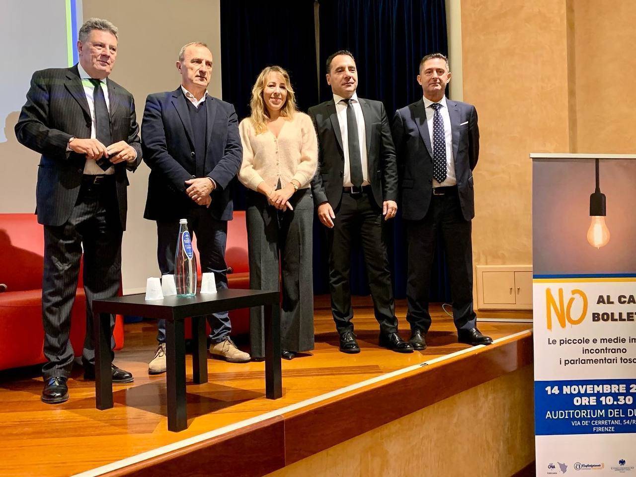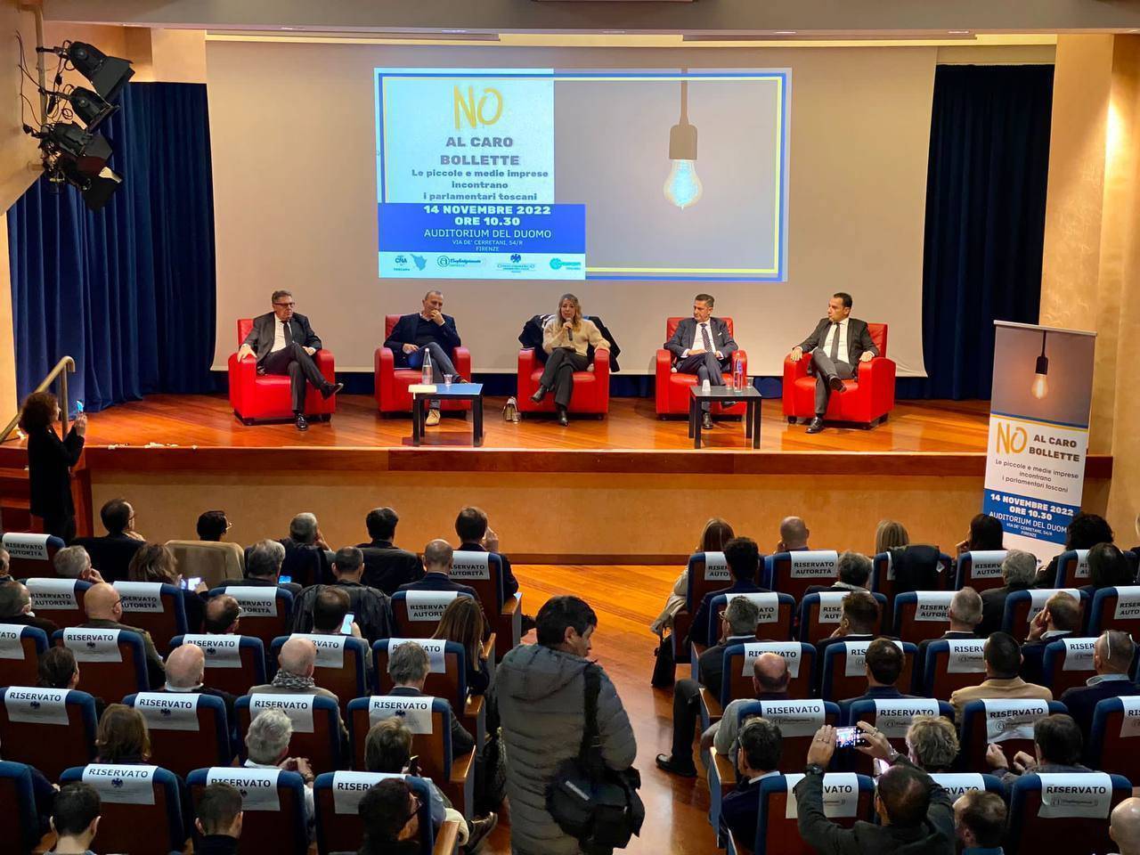 Sul palco, incalzati dalle domande della giornalista Agnese Pini, direttrice delle testate del gruppo Monrif, i presidenti Luca Tonini (CNA Toscana), Luca Giusti (Confartigianato Imprese Toscana), Aldo Cursano (Confcommercio Toscana) e Nico Gronchi (Confesercenti Toscana) hanno denunciato le principali criticità che stanno minacciando la sopravvivenza delle aziende di terziario, artigianato e industria in tutte le sue declinazioni, per formulare al Governo precise richieste. Ad ascoltarli seduti nelle prime file della platea c'erano i senatori e deputati toscani che hanno accettato l'invito.