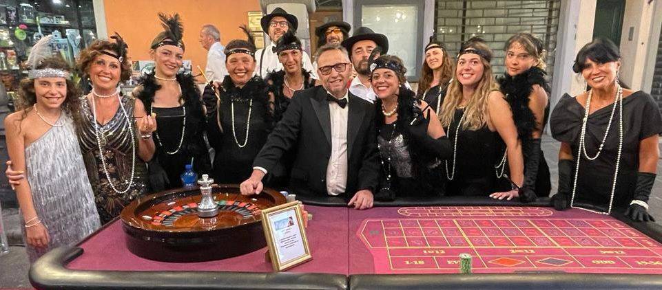 Preso d'assalto il casinò allestito - in modo dimostrativo naturalmente - nel centro del paese per rivivere l'atmosfera del Grande Gatsby, accompagnato dalla musica di street band e ballerini. Raccolto l'invito dei commercianti che avevano chiesto al pubblico di presentarsi vestito a tema: e così molte sono state le famiglie che hanno partecipato al contest che premierà con un ricco buono da ben 500 euro la foto che riuscirà a ricevere più like.