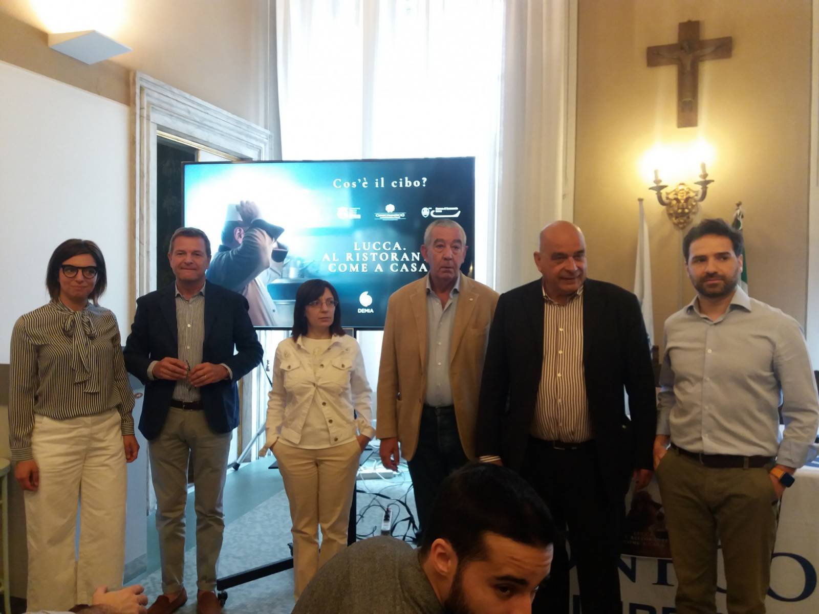 Una sorta di "cartolina" emozionale di Lucca, con focus sulla ristorazione ma non solo quello, rivolto in prima battuta ai turisti, ma anche ai lucchesi stessi. Questo è il risultato del video promozionale voluto dal sindacato provinciale Fipe ristoratori Confcommercio Lucca e realizzato dall'agenzia di comunicazione lucchese Demia, con il contributo economico in parte di un gruppo di ristoratori Fipe e in parte della Camera di Commercio, e il patrocinio del comune di Lucca. Il video è stato presentato durante una conferenza stampa che si è tenuta questa mattina a palazzo Sani e alla quale hanno preso parte: il presidente e la direttrice di Confcommercio Rodolfo Pasquini e Sara Giovannini; il presidente e la vicepresidente di Fipe ristoratori Confcommercio Lucca Antonio Fava e Simona Del Ry; Samuele Cosentino, ex componente del consiglio direttivo di Fipe ristoratori e co -ideatore del video; l'assessore al turismo del Comune di Lucca Stefano Ragghianti; I titolari di Demia Daniel Cosci e Elena Castellacci di Demia, che hanno realizzato il video insieme a Simone Rabassini videomaker di Coralis; e Marta Piacente in rappresentanza della Camera di Commercio di Lucca.