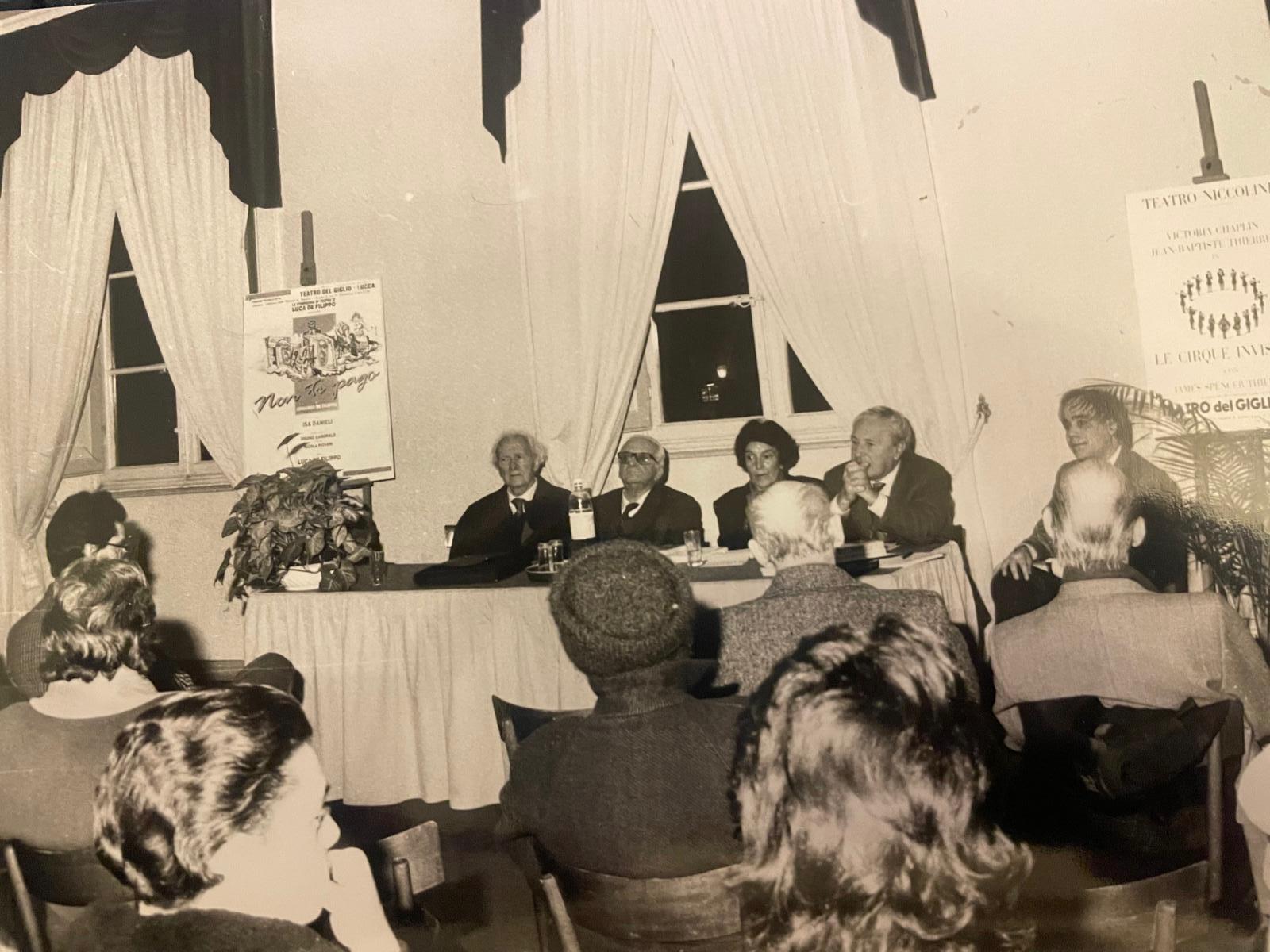 Nella foto: la presentazione del libro Autoritratto di una generazione al teatro del Giglio nel 1992