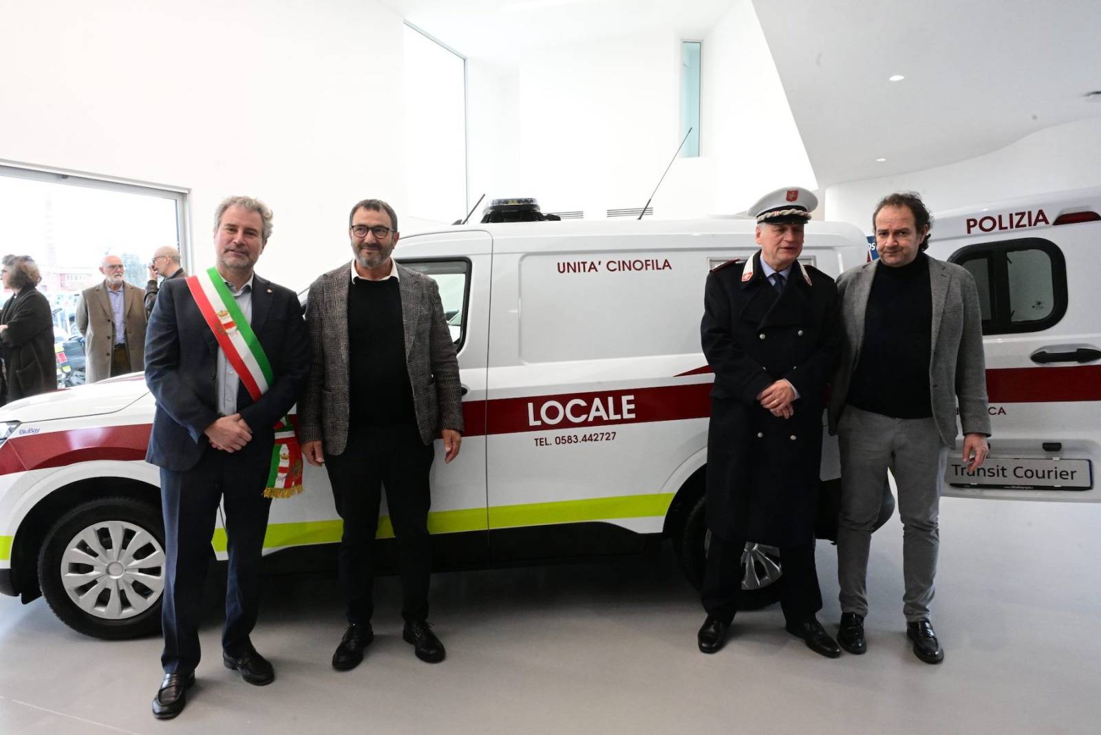 Alla presenza del sindaco Mario Pardini, dell'assessore alla sicurezza Salvadore Bartolomei, del Comandante della Polizia Locale di Lucca Bruno Bertilacchi e del capo di gabinetto Beniamino Placido sono stati presi in consegna oggi due nuovi furgoni Ford Transit acquistati dall'amministrazione comunale da Ford Blubay Lucca per il Nucleo cinofilo della Polizia Locale.