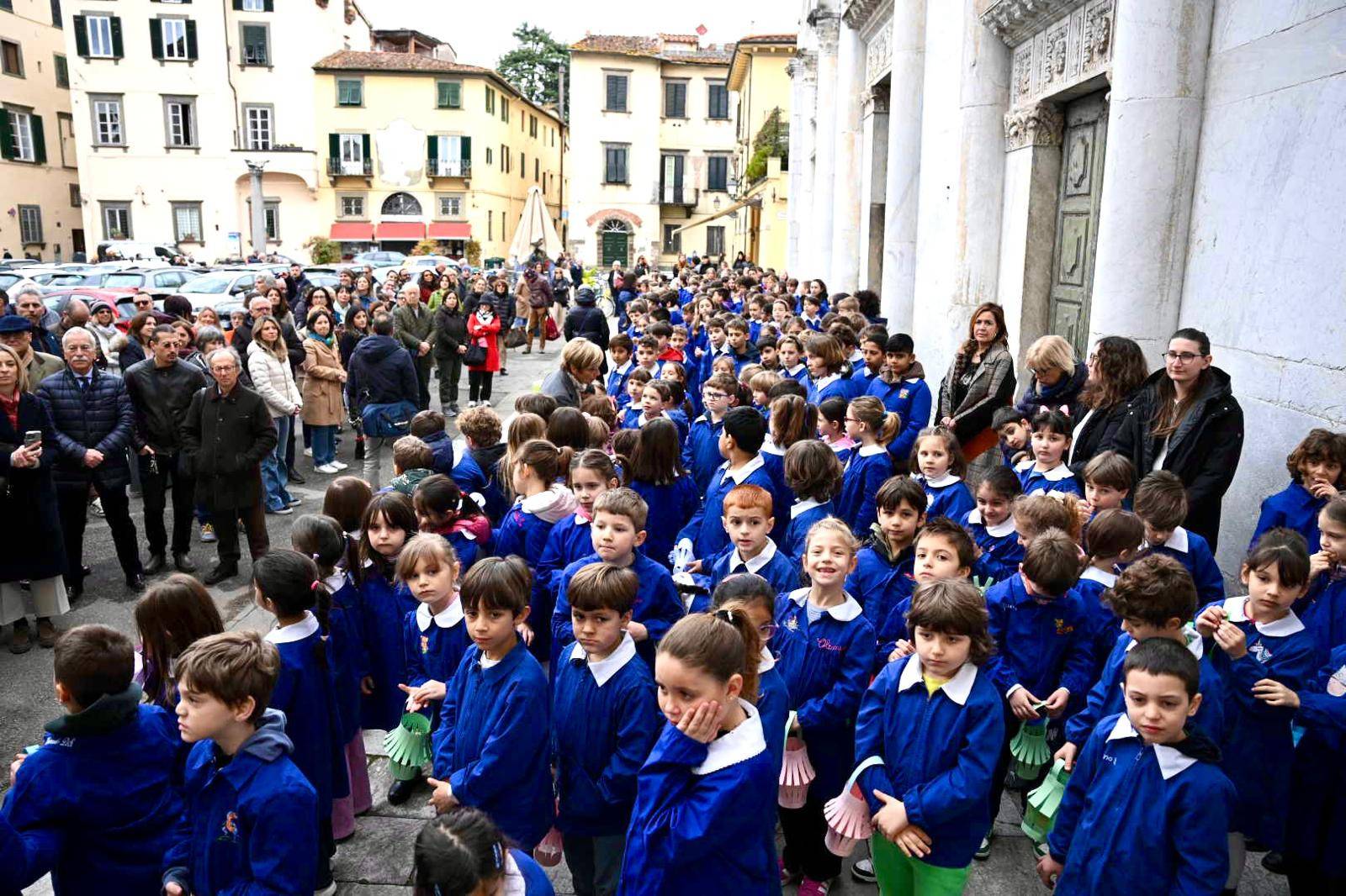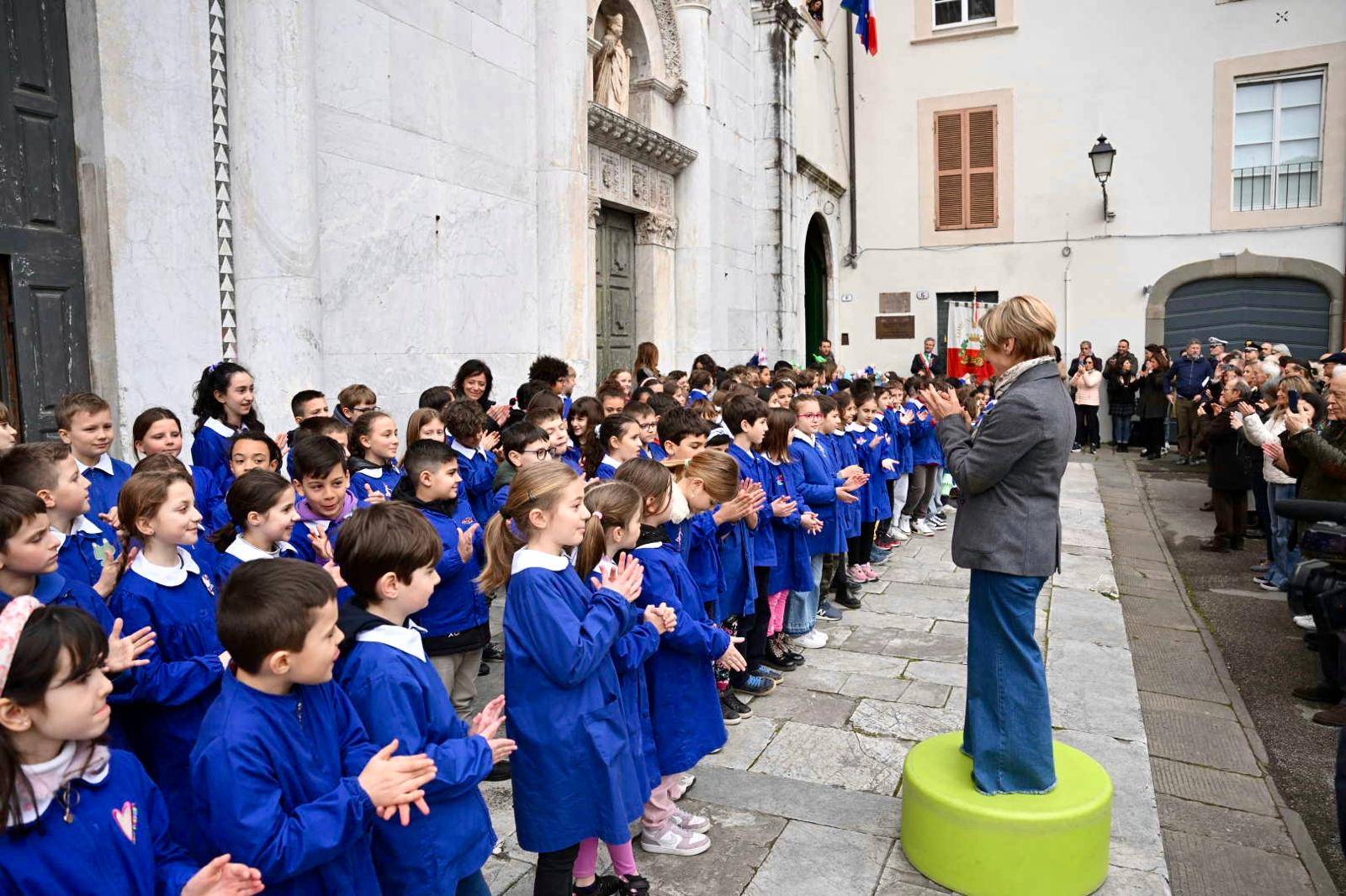 Erano presenti il sindaco di Lucca Mario Pardini, presidente della Fondazione Giacomo Puccini e il direttore Luigi Viani, la dirigente dell'Istituto Comprensivo Lucca Centro Storico Dora Pulina, il presidente del Rotary Club Lucca Nicola Giannecchini assieme agli insegnanti, alunni e alunne della Scuola primaria "G. Pascoli" e molte autorità cittadine. In particolare le classi terze, quarte e quinte dirette dalla Maestra Serena Donati della Scuola di Musica Sinfonia – progetto della Fondazione Cassa di Risparmio di Lucca 'Musica nelle scuole' - accompagnate dal violinista Marco Gallenga, si sono esibite dell'Inno di Mameli e in "Là sui monti dell'Est", brano tratto dall'atti primo dell'opera Turandot di Giacomo Puccini, nell'ambito delle celebrazioni per il 100esimo anniversario dalla prima messa in scena. Questa giornata rappresenta così una tappa di avvicinamento all'edizione di Turandot del centenario che andrà in scena al Teatro del Giglio – Giacomo Puccini – il 25 aprile prossimo.