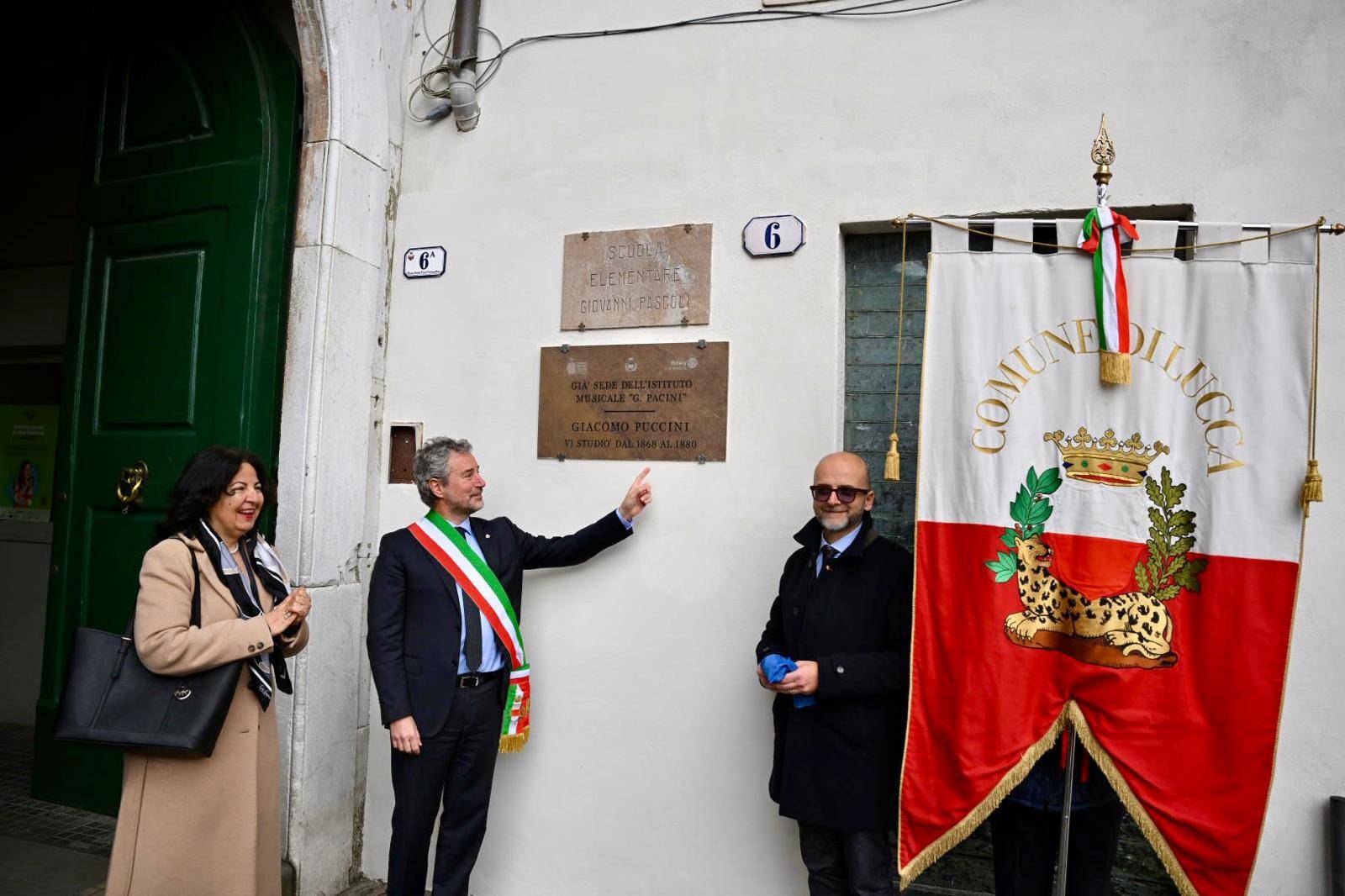 "Esprimo la mia gratitudine e quella degli alunni e delle alunne, e dei docenti della nostra scuola – ha affermato la dirigente dell'Istituto Comprensivo Lucca, Centro storico, Dora Pulina – Puccini ha passato gli anni della sua adolescenza e della parte principale della sua formazione in questi ambienti. La Sala Pacini, oggi adibita a palestra, era un tempo una sala da concerto con palcoscenico e gradinata. Qui gli alunni dell'Istituto Musicale sostenevano i loro saggi di studio. Questa memoria tenuta viva da Gisella Gori, a sua volta musicista e docente del nostro Conservatorio che propose l'epigrafe, giunge oggi a compimento con questa cerimonia così partecipata all'ingresso principale della nostra scuola".