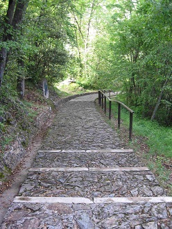 Il secondo intervento riguarda la Via Crucis di Sant’Anna di Stazzema, sentiero lastricato realizzato tra il 1978 e i primi anni Novanta, che dalla piazza della chiesa, attraverso il bosco, conduce al Sacrario. Lungo il percorso si trovano 15 stazioni con 27 formelle in bronzo, realizzate da nove artisti, che accostano le tappe del Calvario di Cristo agli episodi della strage del 12 agosto 1944. Una Via Crucis insieme religiosa e civile, concepita come un piccolo pellegrinaggio di avvicinamento al Sacrario, in cui le oltre 500 vittime di Sant’Anna vengono simbolicamente collegate a ogni altro martire della guerra e della violenza, di ogni luogo e di ogni tempo. Il silenzio e la pace del luogo invitano al raccoglimento e alla riflessione.