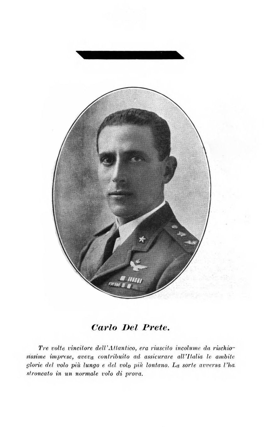 95 anni fa, alle 5,55 del 16 agosto 1928, dopo una lunga e dolorosa agonia moriva Carlo del Prete, al Console d’Italia, Censi che gli somministrava l’ossigeno disse ”addio Censi: baciami la mamma” e spirò senza un lamento. Cinque giorni dopo avrebbe compiuto 31 anni. Dopo aver raggiunto i massimi successi mondiali ed essere balzato alle cronache del mondo, nei lunghi giorni dell’agonia si manifestò l’animo semplice e puro che rimetteva la sua vita in mano a Dio, pregava la madonna e pensava alla mamma lontana. Il mondo che al tempo seguiva le imprese dei trasvolatori come negli anni 70 si seguiva la conquista della luna, rimase sconvolto.