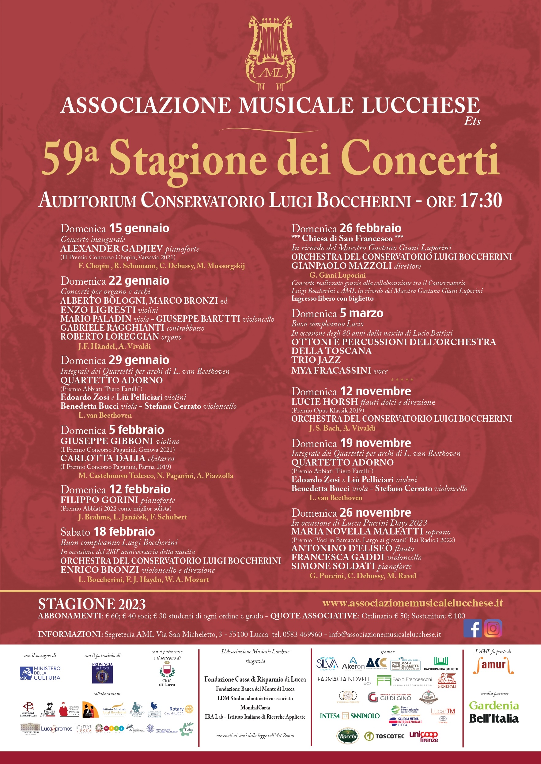 Il programma completo della stagione su www.associazionemusicalelucchese.it