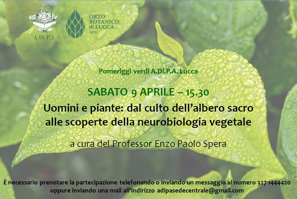 Sabato 9 aprile, alle 15.30, presso la Casermetta San Regolo, sopra l’Orto Botanico di Lucca, si svolgerà la conferenza a cura del professor Enzo Paolo Spera, dal titolo: "Uomini e piante: dal culto dell’albero sacro alle scoperte della neurobiologia vegetale."