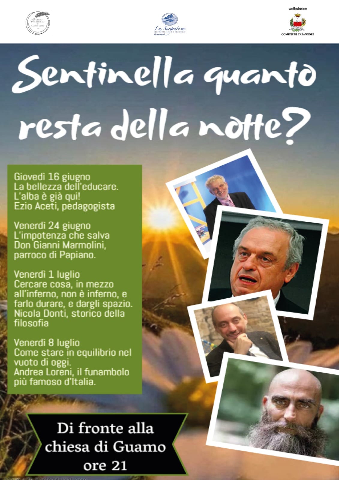 Con questa serie di incontri la nostra comunità di s. Eugenio, col patrocinio dell’Arcidiocesi di Lucca, del Comune di Capannori e in collaborazione con il Festival Economia e Spiritualità, desidera ascoltare quelle sentinelle dell’oggi affinché ci indichino, nella notte, un precorso per cercare nello Spirito di Dio l’alba di un nuovo giorno.