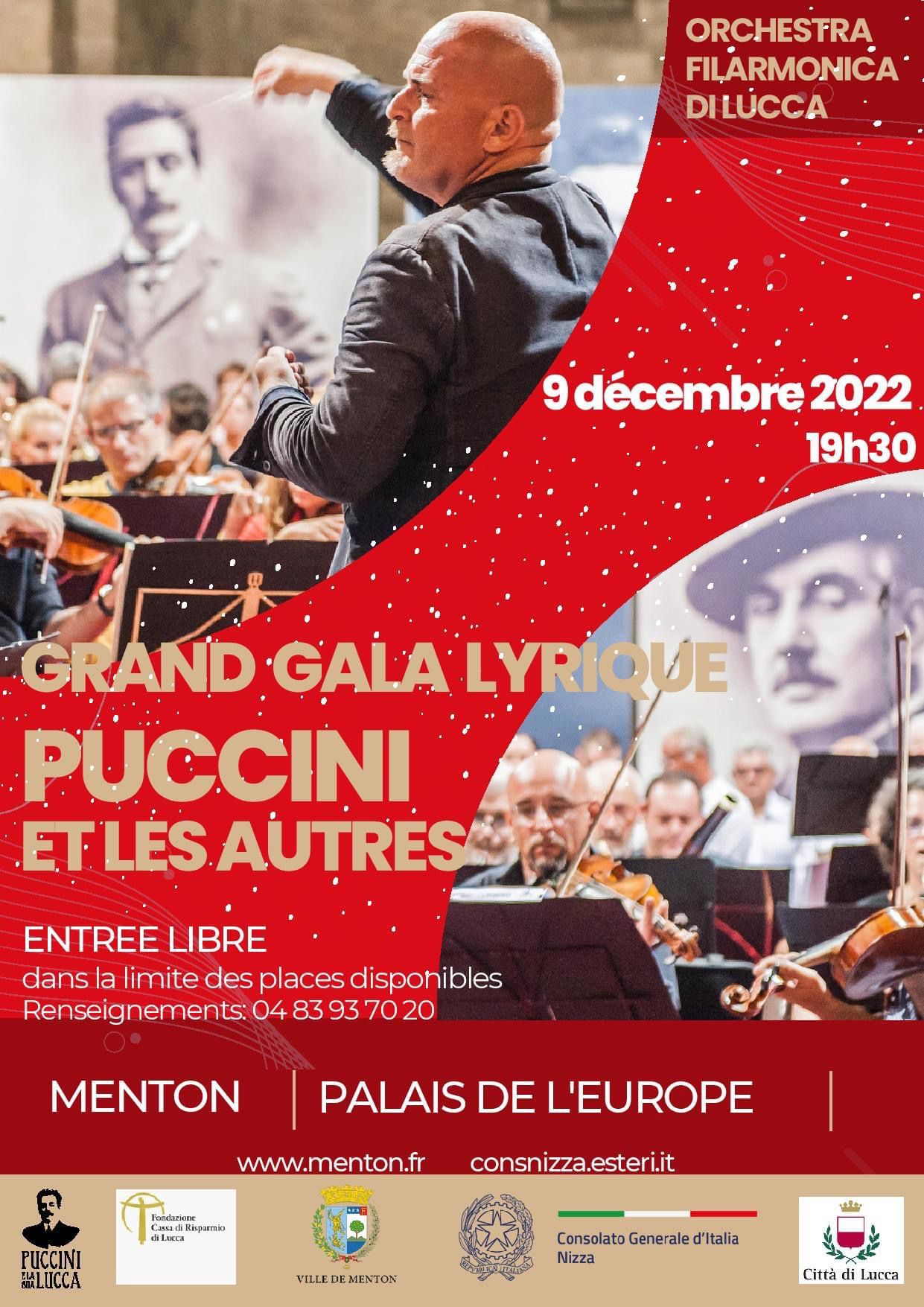 "Per l'occasione delle prossime festività natalizie e di fine anno, il Consolato Generale d'Italia è lieto di presentare il concerto "Gran Gala lirico Puccini e gli altri" dell'Orchestra Filarmonica di Lucca diretta da Andrea Colombini. L'evento, promosso in collaborazione con la Ville de Menton, sarà l'occasione di incontro per la collettività italiana della circoscrizione consolare e le autorità locali francesi.