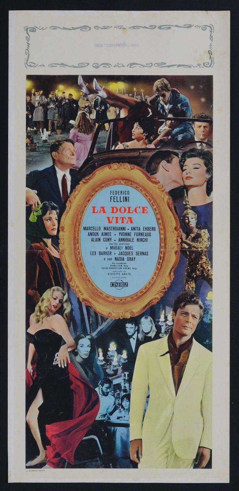 Gli anni Sessanta si aprono con Il bell'Antonio, per la regia di Mauro Bolognini, insieme di nuovo a Claudia Cardinale, e il mitico La dolce Vita, che dette vita al sodalizio con Federico Fellini, testimoniato in questa sede anche dai manifesti e dal corredo pubblicitario di 8 e mezzo (1963), La città delle donne (1980) e Ginger e Fred (1986).