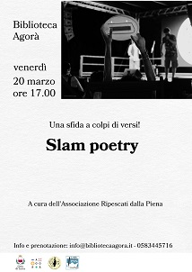Tra gli appuntamenti principali si segnalano la proiezione del docufilm dedicato alla poetessa Patrizia Cavalli "Le mie poesie non cambieranno il mondo" (18 marzo), l'incontro di "Slam Poetry" e il corso di lettura a voce alta con Alfonso Cuccurullo, per dare corpo e respiro alle parole (7 marzo). Intanto ad Agorà Fuori le Mura prende il via "Pillole di fumetto", un corso gratuito per ragazzi a cura di Artespressa (20 marzo), mentre arriva Lucca Legge, ciclo di appuntamenti promosso dagli aderenti al Patto per la Lettura di Lucca, con laboratori, incontri e collaborazioni diffuse sul territorio.