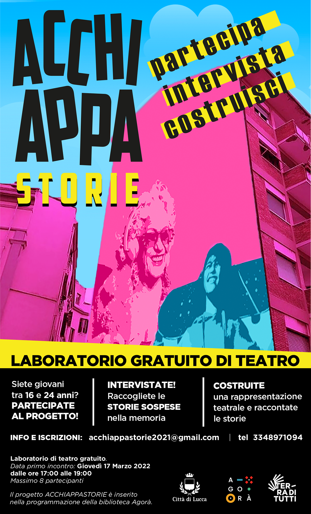 Biblioteca Agorà e Terra di tutti promuovono il laboratorio di teatro Acchiappastorie, che si rivolge a giovani di età compresa fra 17 e 25 anni.