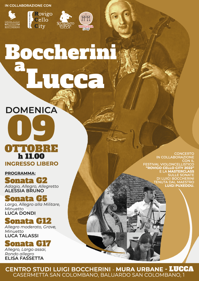 L'evento Boccherini a Lucca avrà luogo domenica 9 ottobre alle ore 11 alla Casermetta San Colombano, Baluardo San Colombano (Mura Urbane) Lucca, sede del Centro studi Luigi Boccherini.