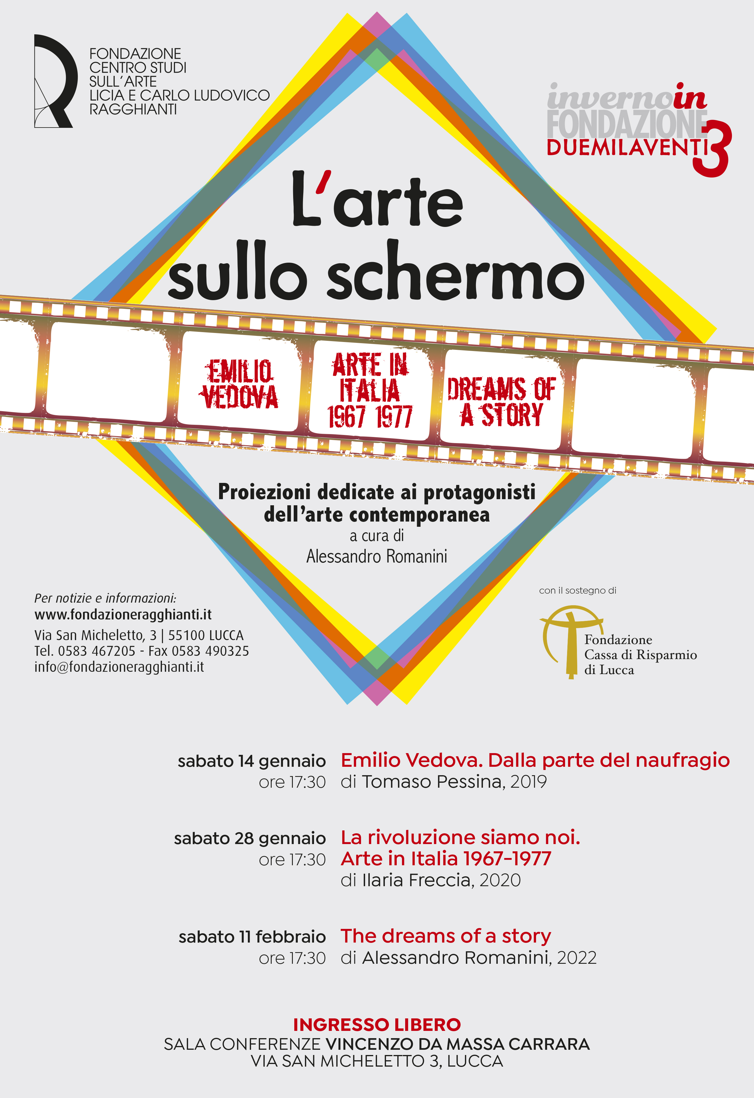 Il ciclo “L’arte sullo schermo”, che si inserisce nella linea di ricerca tracciata da Carlo Ludovico Ragghianti, uno dei principali teorici e pionieri dell’utilizzo del medium audiovisivo per l’interpretazione e la divulgazione dell’arte, quest’anno è incentrato sul contemporaneo: da Emilio Vedova all’arte italiana degli anni Sessanta e Settanta, fino ad alcuni protagonisti della giovane e vivacissima scena africana.