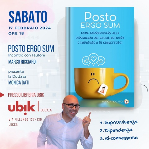 La Libreria Ubik Lucca è lieta di annunciare un incontro che si terrà il prossimo sabato 17 Febbraio alle ore 18:00. Avremo il piacere di ospitare in libreria la presentazione del libro "POSTO ERGO SUM" di Marco Ricciardi, il viaggio ironico di un nostalgico informatico che si diverte a navigare tra gli oceani del cambiamento sociale.