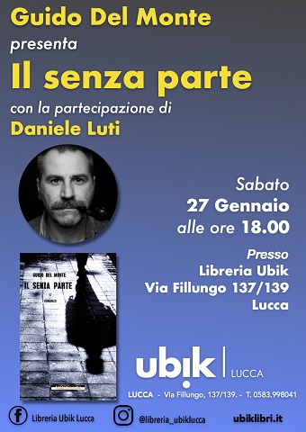 Sabato 27 gennaio, ore 18 presso la Libreria Ubik Lucca, via Fillungo, 137 si terrà la presentazione del romanzo "Il senza parte" di Guido Del Monte Morellini editore, Milano. Dialogherà con l'autore, Daniele Luti (volterrano, critico letterario, co-direttore della collana Incipit di ETS, considerato uno dei maggiori curatori della memoria letteraria di Carlo Cassola).