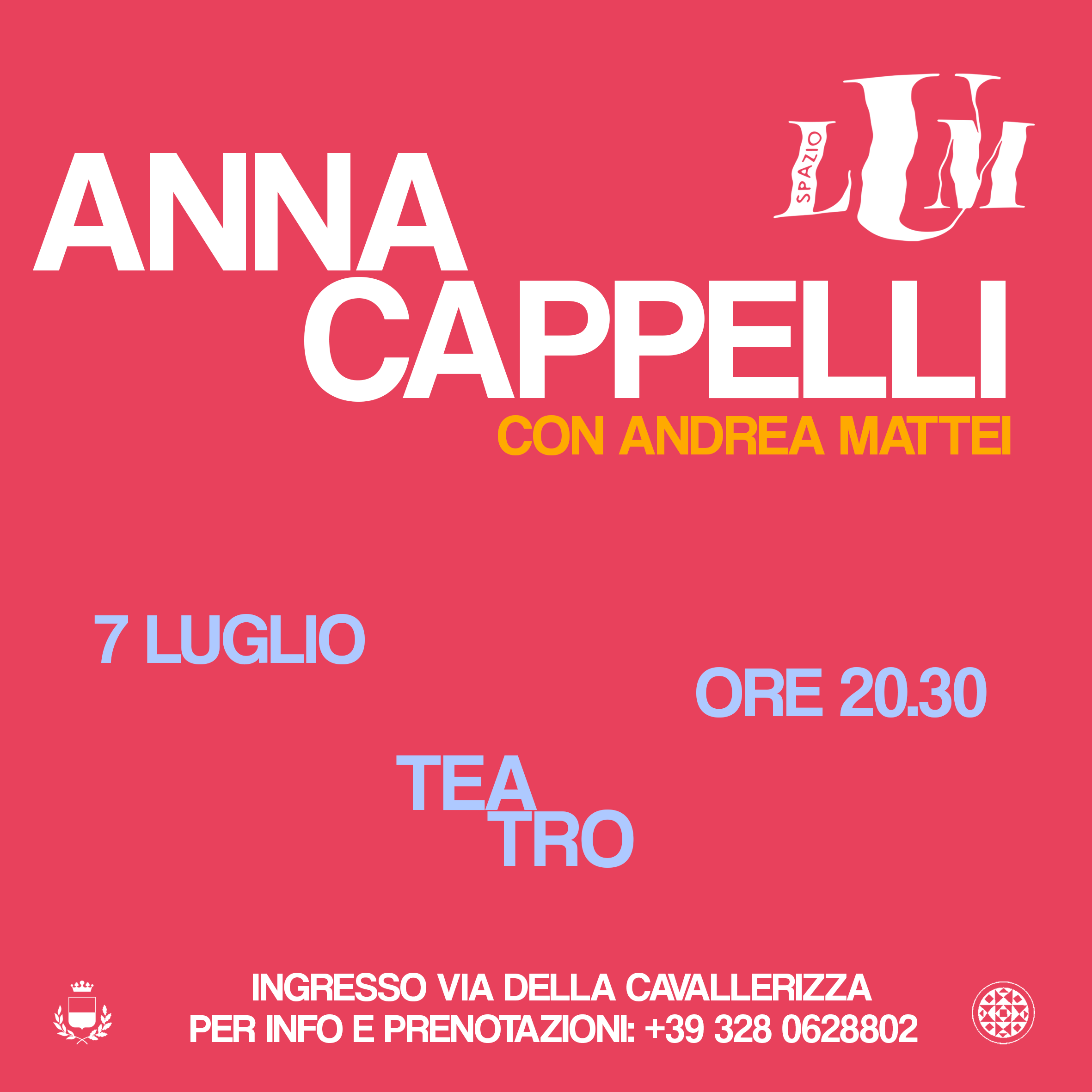 Anna Cappelli, monologo dell'artista campano Annibale Ruccello, racconta la storia di una ragazza che, nell'Italia degli anni '60, cerca una casa, un compagno, un posto al mondo: un crescendo tragicomico verso la felicità, felicità che, una volta persa definitivamente, lascia solo un gran vuoto da colmare nel modo più sanguinoso possibile.