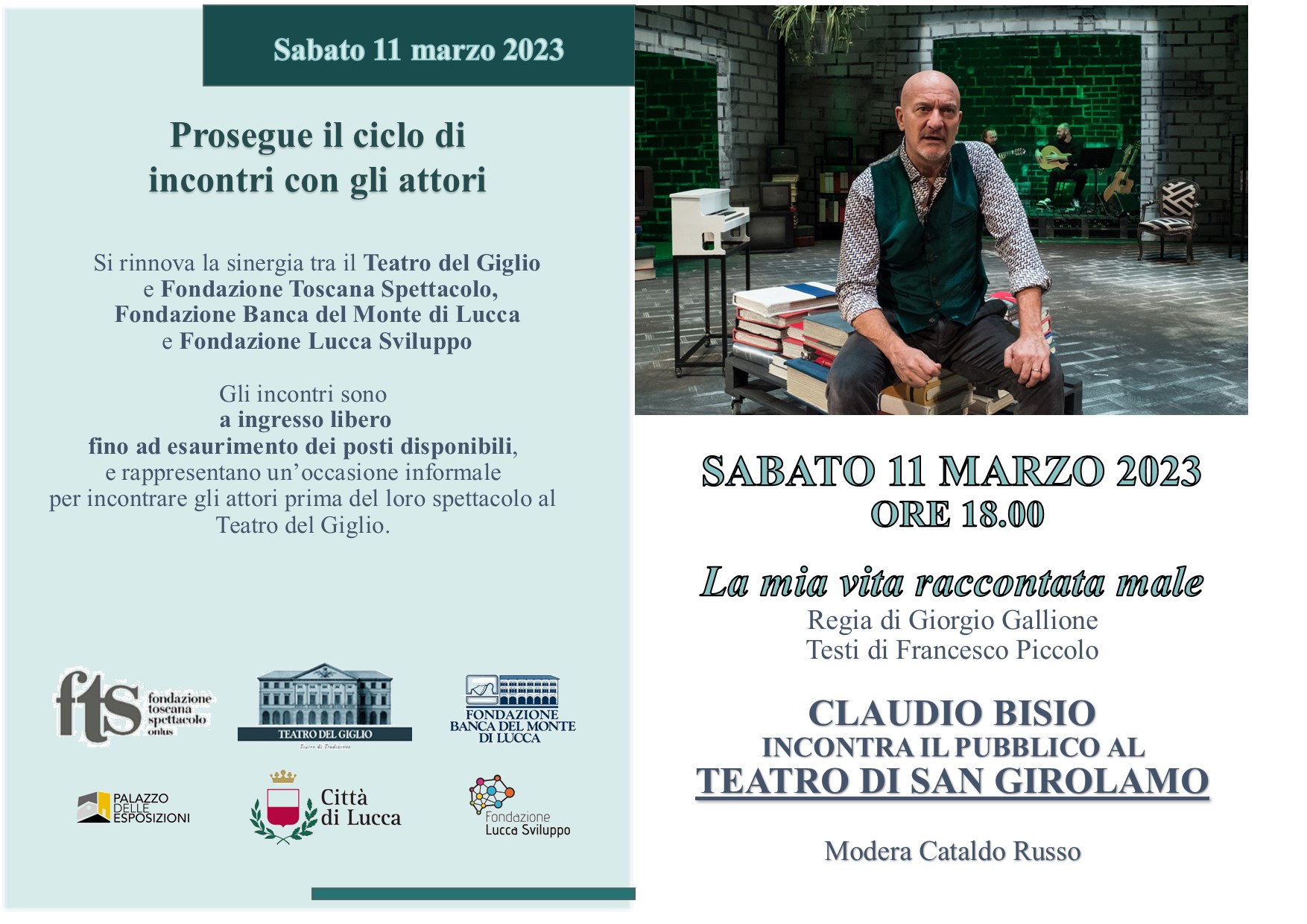 Bisio protagonista, insieme ai musicisti Marco Bianchi e Pietro Guarracino, dello spettacolo La mia vita raccontata male su testi di Francesco Piccolo, per la regia di Giorgio Gallione, in scena al teatro del Giglio nei giorni 10 e 12 marzo, dialogherà apertamente con il pubblico, moderato da Cataldo Russo, in un evento ad ingresso libero, fino ad esaurimento posti.