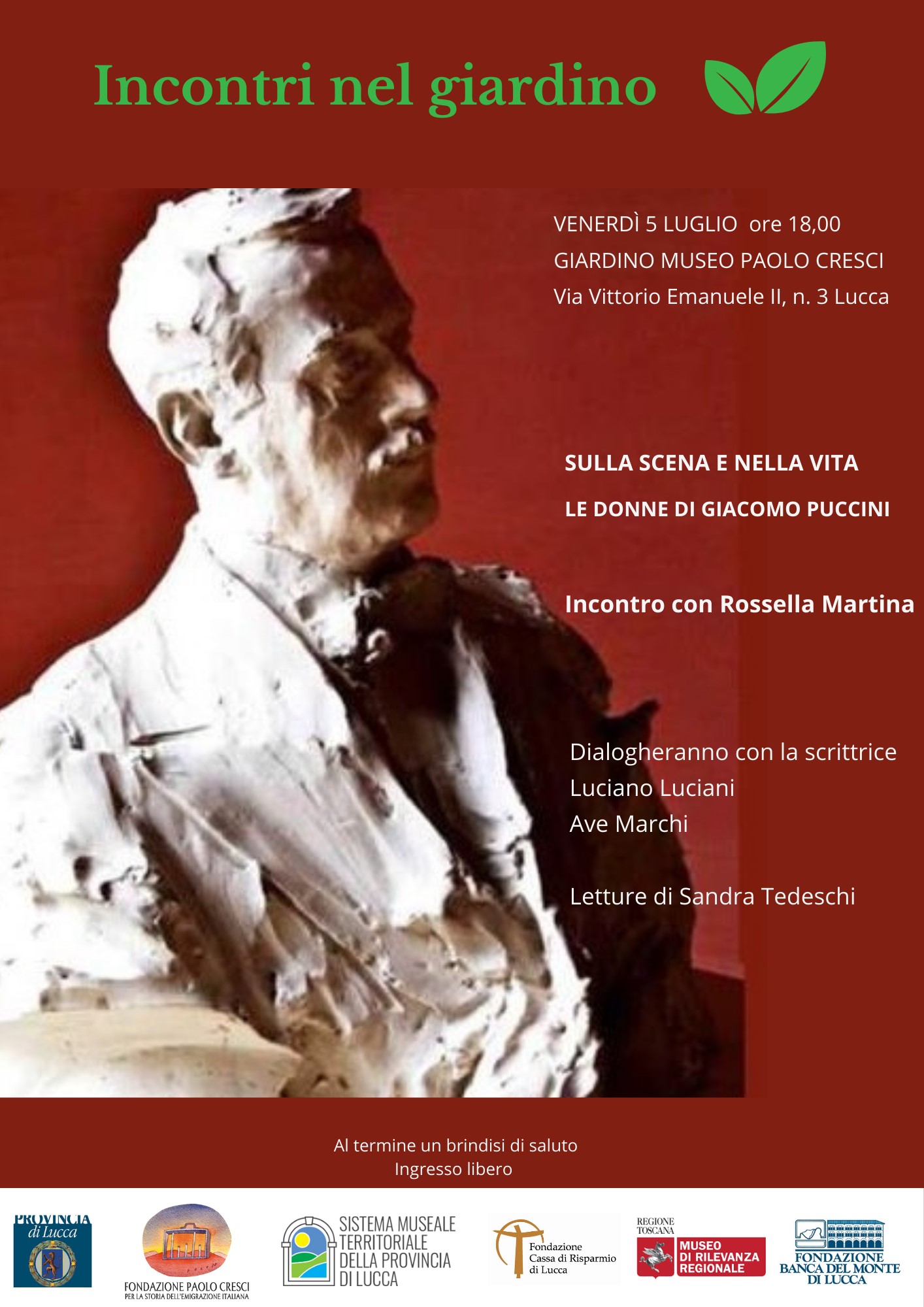 Il prossimo venerdì sarà ospite la scrittrice Rossella Martina che dialogherà con la presidente della Fondazione Ave Marchi e con il critico letterario Luciano Luciani a proposito di Giacomo Puccini e di alcuni aspetti della sua vita ricostruiti grazie a documenti e lettere sconosciute: gli esordi, i successi, la fama, la solitudine degli ultimi giorni.