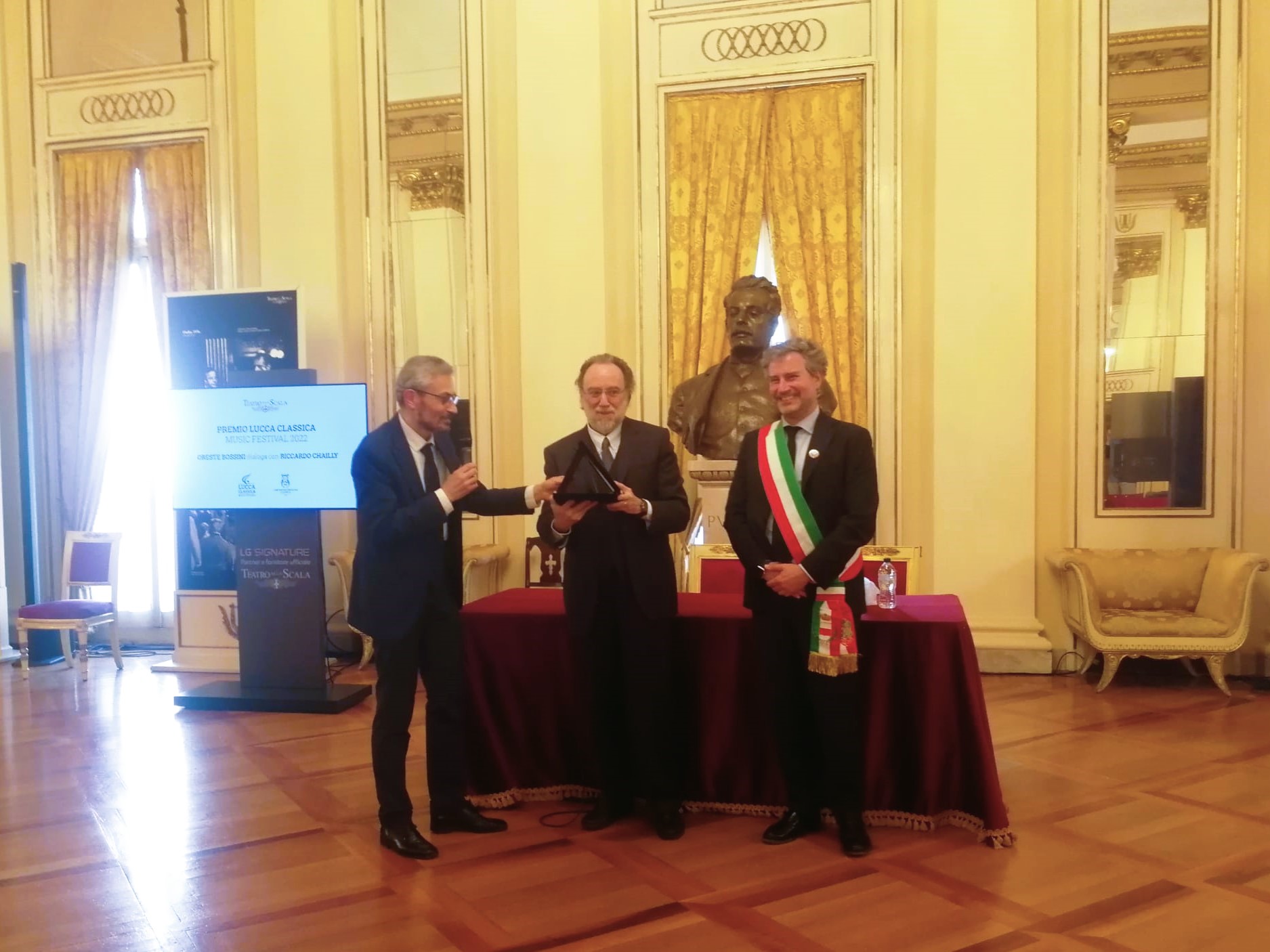 «Vi ringrazio di cuore per questo premio, per la dedica bellissima e il significato che racchiude. Da quando ho iniziato il mio percorso scaligero, Puccini è sempre stato un autore su cui ho puntato moltissimo dal punto di vista della ricerca interpretativa e musicologica. Siamo a circa 3/4 di questo ciclo pucciniano e la stagione prossima tornerà a vedermi impegnato come interprete». Con queste parole il Maestro Riccardo Chailly ha accolto il Premio Lucca Classica 2022 che gli è stato consegnato oggi (27 aprile) al Teatro alla Scala, dal presidente dell'Associazione musicale lucchese Marco Cattani e dal sindaco di Lucca Mario Pardini.