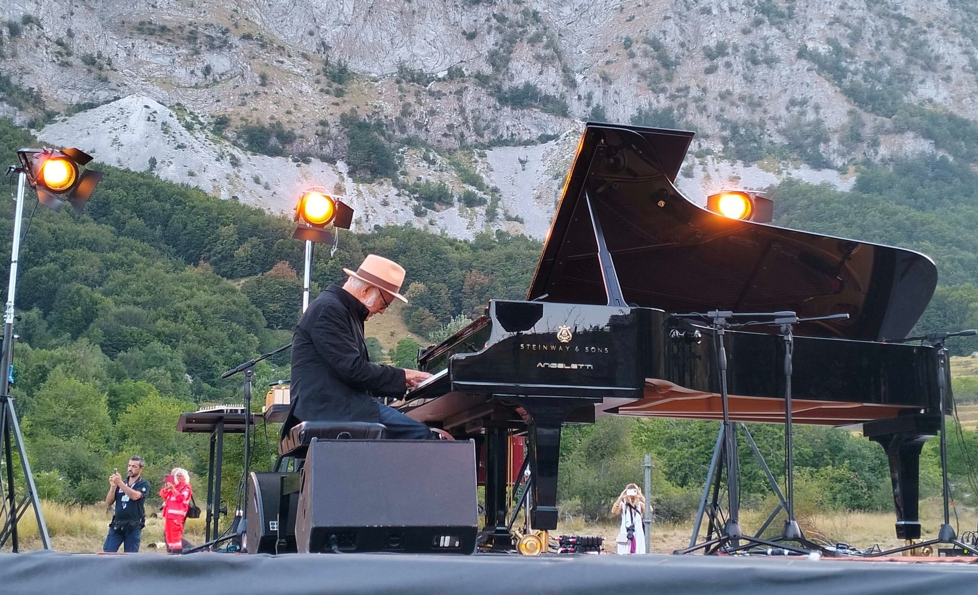 Difficile non distrarsi circondati da tanta meraviglia. Quando il maestro si è seduto al pianoforte, c'è chi ha chiuso gli occhi, chi li ha rivolti all'orizzonte, chi alla propria amata, baciandola e stringendola tra le braccia... Le note celestiali che aleggiavano leggere nell'aria ispiravano le fantasie più remote: una rondine nel cielo, libera; un aereo che, nell'etere, lascia una scia luminosa sull'indaco firmamento; sagome di figure scure sulle colline, simili ai pastori di una volta, così inquietanti ed ancestrali...