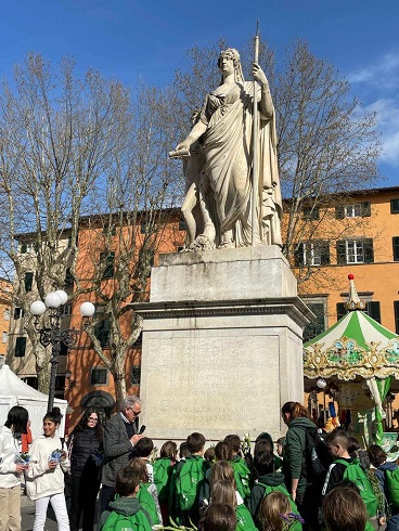 "Ma il momento più coinvolgente – riporta Angelini - è stato l'omaggio floreale alla statua di Maria Luisa, posta al centro della piazza Grande ed opera di Lorenzo Bartolini, curato dagli alunni dell'International Primary School di Altopascio e dagli studenti del Istituto "Sandro Pertini di Lucca". Il presidente della Fondazione Andrea Palestini ha poi onorato la statua con un mazzo di fiori cinti dal nastro tricolore. I presenti, con questo gesto altamente simbolico, hanno voluto ricordare l'illuminato e operoso governo di Maria Luisa, la sua imperitura presenza nella memoria storica della città. Tutti i presenti hanno infine commentato con sorpresa e preoccupazione il recente furto del Giglio Borbonico dallo scettro di Maria Luisa, avvenuto probabilmente nelle notti precedenti alla celebrazione. Un atto vandalico? Un furto? O forse, come si sono augurati, una scherzosa burla? Ci auguriamo che il "Giglio Rapito" sia presto riconsegnato e riposto sulla statua. Ed infine una comune riflessione: ma le telecamere poste nella piazza erano attive e hanno ripreso gli autori di quel gesto?"
