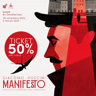 Dal 16 novembre sarà possibile acquistare fisicamente i biglietti scontati del 50% per la mostra "Giacomo Puccini Manifesto. Pubblicità e illustrazione oltre l'opera lirica", in programma a Lucca dal 29 novembre 2024 al 2 marzo 2025. Si tratta di un'offerta speciale di prevendita, fino al giorno di inaugurazione della mostra.