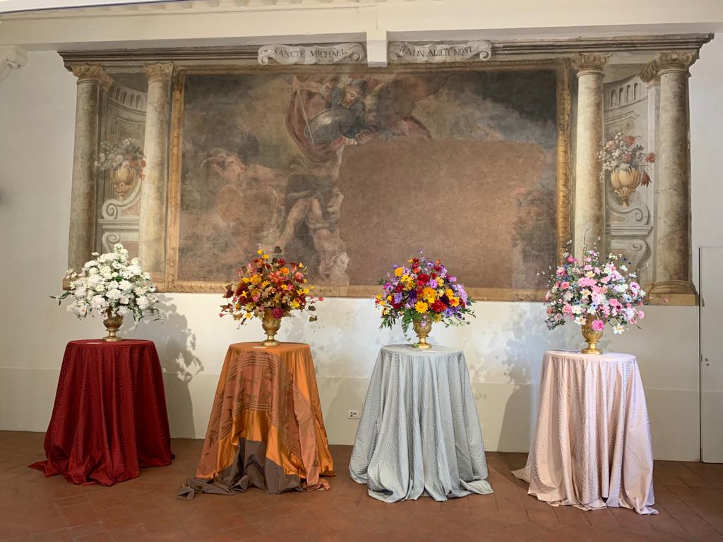 Le sue composizioni, come lei stessa ama definirle, sono il “perfetto inganno “per i nostri occhi e vi assicuro, avendo visitato la mostra e viste le composizioni molto da vicino, che di “perfetto inganno” si tratta. Le quattro composizioni floreali di fronde muro con l’affresco rappresentano le quattro stagioni, quelle stagioni che accompagnano anche le nostre piante nella loro evoluzione. Un po’ come il bellissimo affresco delle nostre mura cittadine che ogni anno vedono l’affresco portato dalle composizioni floreali della bella manifestazione.