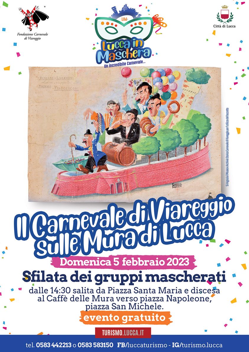 Siamo alla vigilia della storica data di domenica 5 febbraio, quando per la prima volta il Carnevale di Viareggio, a partire dalle 14.30, sfilerà sulle Mura di Lucca con maschere, animazioni e figuranti per una giornata memorabile. Sarà l’evento culmine di LIM (Lucca in Maschera), che ha richiamato l’attenzione dei media locali e nazionali grazie ad un programma ampio e variegato che sta portando a Lucca lo spirito di festa e leggerezza che contraddistingue la manifestazione.