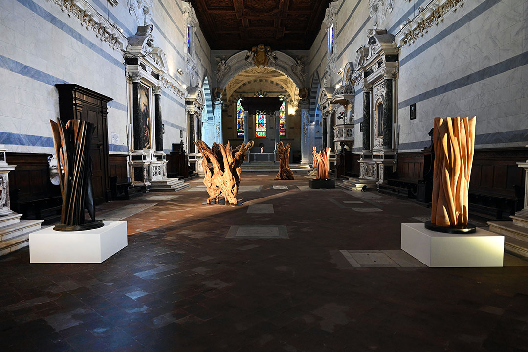 La mostra, che ha ottenuto il contributo del Consiglio Regionale della Toscana, il patrocinio di Confindustria Toscana Nord e CNA di Lucca, raccoglie 45 opere, fra marmi, bronzi e opere lignee, esposte in parte nel Palazzo delle Esposizioni della Fondazione Banca del Monte di Lucca, in parte nella Chiesa dei Servi, e con suggestive ambientazioni in diverse piazze del centro storico.