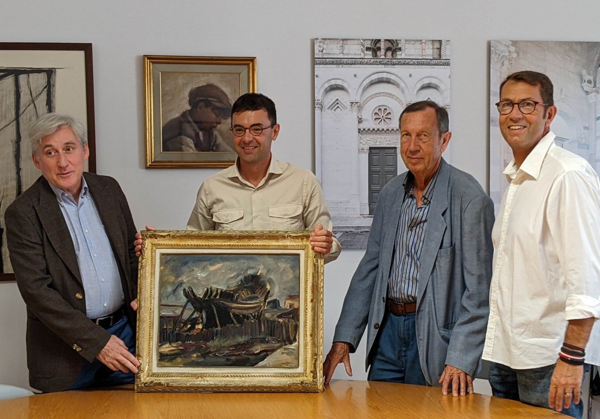 La collezione della Fondazione Ragghianti si arricchisce di una nuova opera: si tratta di un olio su cartone intelato del pittore versiliese Renato Santini (1912-1995), intitolato “Cantiere Darsena vecchia”, del 1950, dono del figlio dell’artista Antonello Santini.