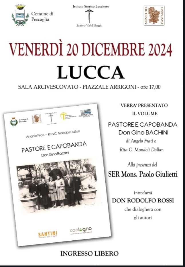 Verrà presentato, nel Salone dell’Episcopio in Piazzale Arrigoni, venerdì 20 dicembre alle ore 17, alla presenza di Paolo Giulietti, Arcivescovo di Lucca, il libro “Pastore e capobanda. Don Gino Bachini, parroco di Colognora in val di Roggio".