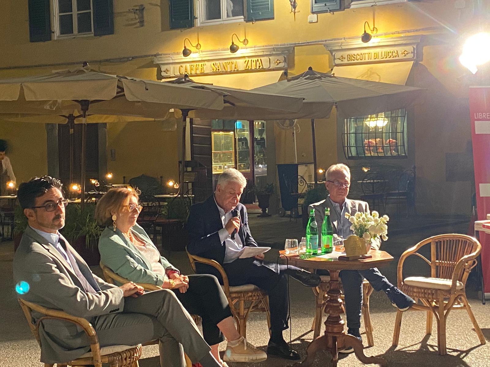 Una serata incantata con una luna piena d'eccezione quella che ha visto chiudere il ciclo di due incontri dei Salotti di Lucca in San Frediano organizzati da Michele Tambellini del Caffè Santa Zita che ha saputo se possibile, rendere ancora più magica piazza San Frediano. Un'idea questa dei salotti di Lucca, nata insieme oltre che a Michele, a Nicola Lattanzi professore di Economia aziendale alla Scuola Imt Alti studi di Lucca e alla libreria Ubik, per portare nelle piazze della nostra città la cultura alla portata di tutti, in un'ora appassionata e molto partecipata, una sorta di City Lab all'insegna dell'innovazione urbana.