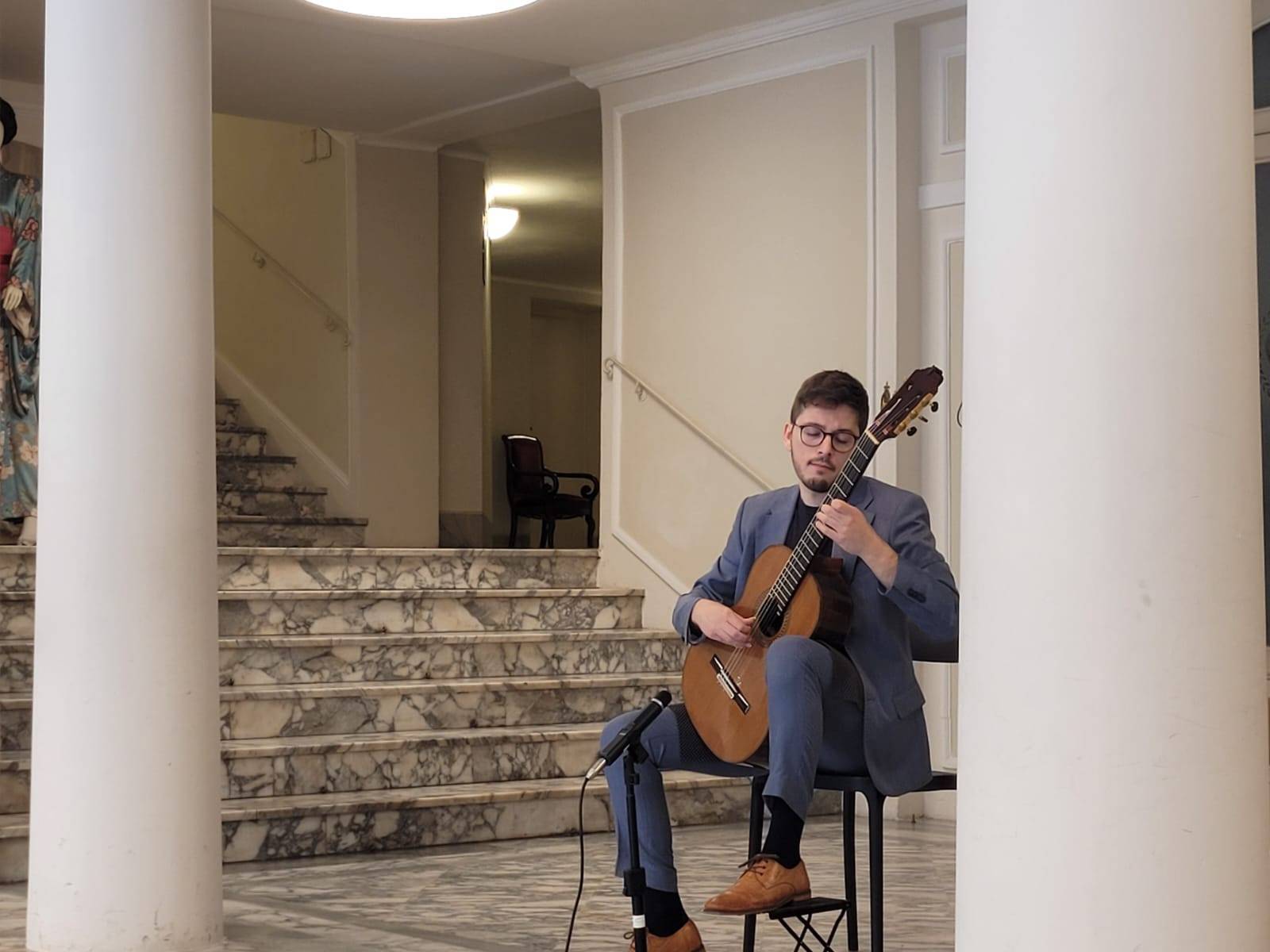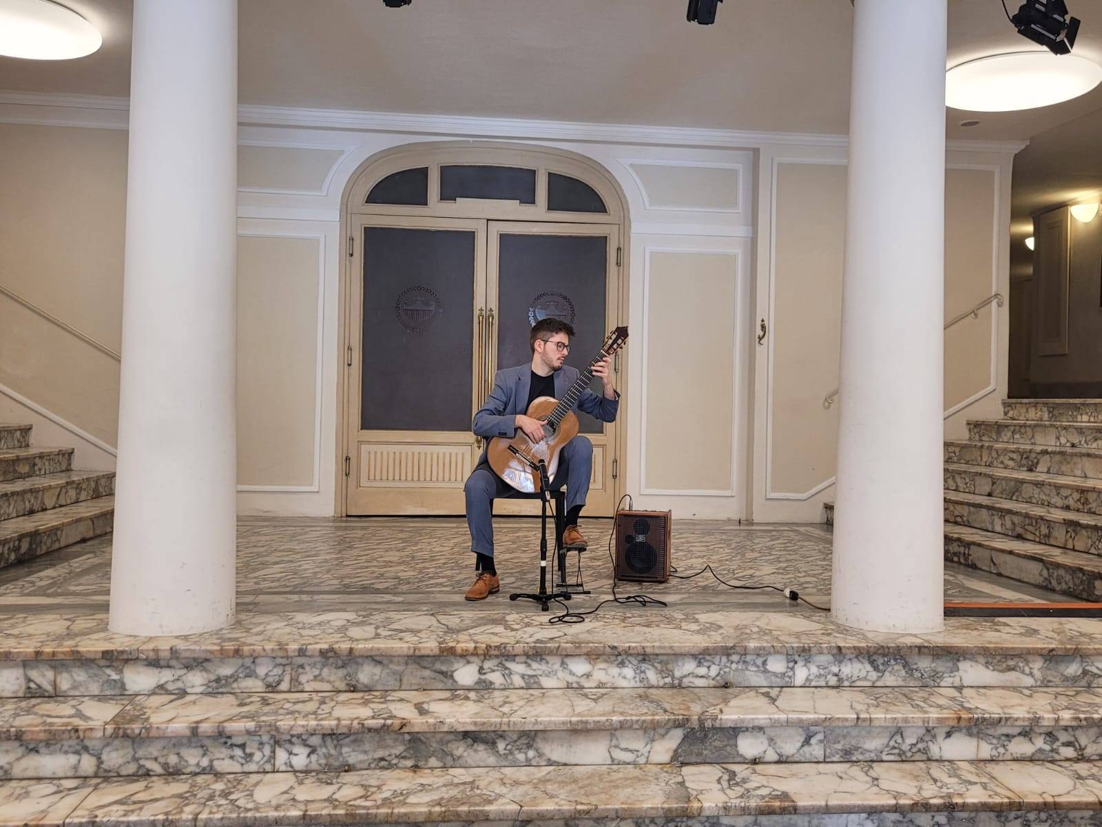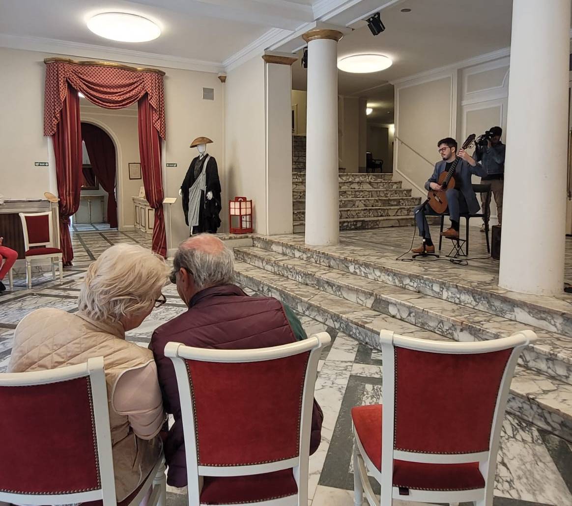 Questa lunga serie di iniziative è stata inaugurata con il concerto, tenutosi alle 11.30 nel foyer del teatro, di Ysè Dastague. "Un bravissimo, giovane chitarrista francese- l'ha presentato Cataldo Russo, che curerà le rappresentazioni comprese nell'iniziativa- Ha cominciato a studiare chitarra classica in Francia con Benoit Albert, per poi proseguire gli studi in Spagna con Francisco Bernier e in Italia con Giampaolo Bandini; ha partecipato a numerosi festival e concorsi internazionali in Francia, Spagna, Danimarca e Italia, dove è stato premiato, e al momento sta concludendo la sua formazione presso il conservatorio Boccherini di Lucca". Si tratta dunque di un'occasione di collaborare con il conservatorio, peraltro non isolata: il teatro avrà infatti modo di ospitare anche i saggi di vari studenti del Boccherini.