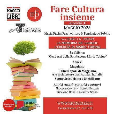 Si inizia giovedì 4 maggio con La memoria dei luoghi e l'eredità di Mario Tobino, un “a tu per tu” con Isabella Tobino, Presidente della Fondazione Mario Tobino di Lucca e la Collana Quaderni della Fondazione Mario Tobino che ha già all'attivo 3 titoli (Maggiano. Gli anni del cambiamento a cura di Giovanni Contini e Marco Natalizi; I Liberi spazi di Maggiano e le architetture manicomiali in Italia a cura di Emanuela Sorbo; e il recente Sogno, Scetticismo e nichilismo a cura di Riccardo Roni) che spaziano dalla memoria orale, all'architettura, alla filosofia a dimostrazione dell'ampio spettro di interessi che nascono dall'eredità di Mario Tobino e dello spazio dell'ex Ospedale psichiatrico di Maggiano, temi peraltro oggi quanto mai drammaticamente attuali.