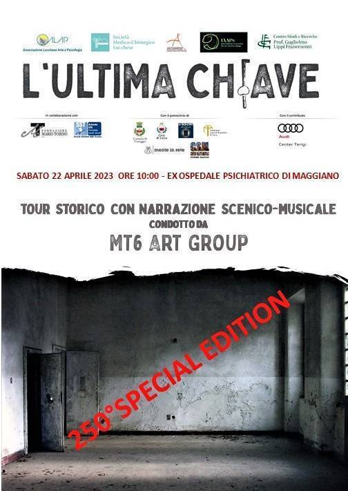 Gli artisti di “MT6 . Art Group” animano interpretando scene liberamente tratte dalle opere di Mario Tobino e brani musicali, raccontando la storia della psichiatria italiana e di quella riabilitazione psicosociale che da sempre ha contraddistinto la psichiatria lucchese, sin dai tempi dell’antico manicomio.