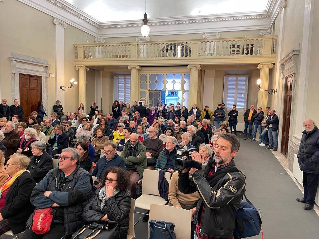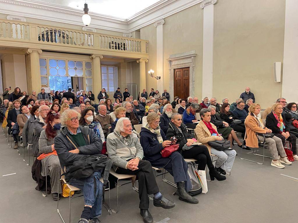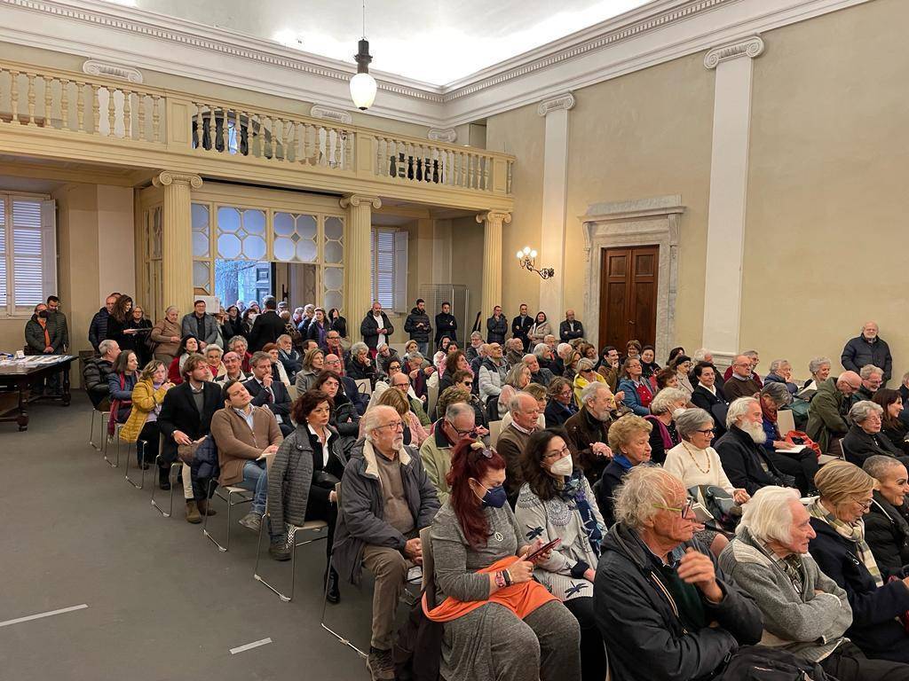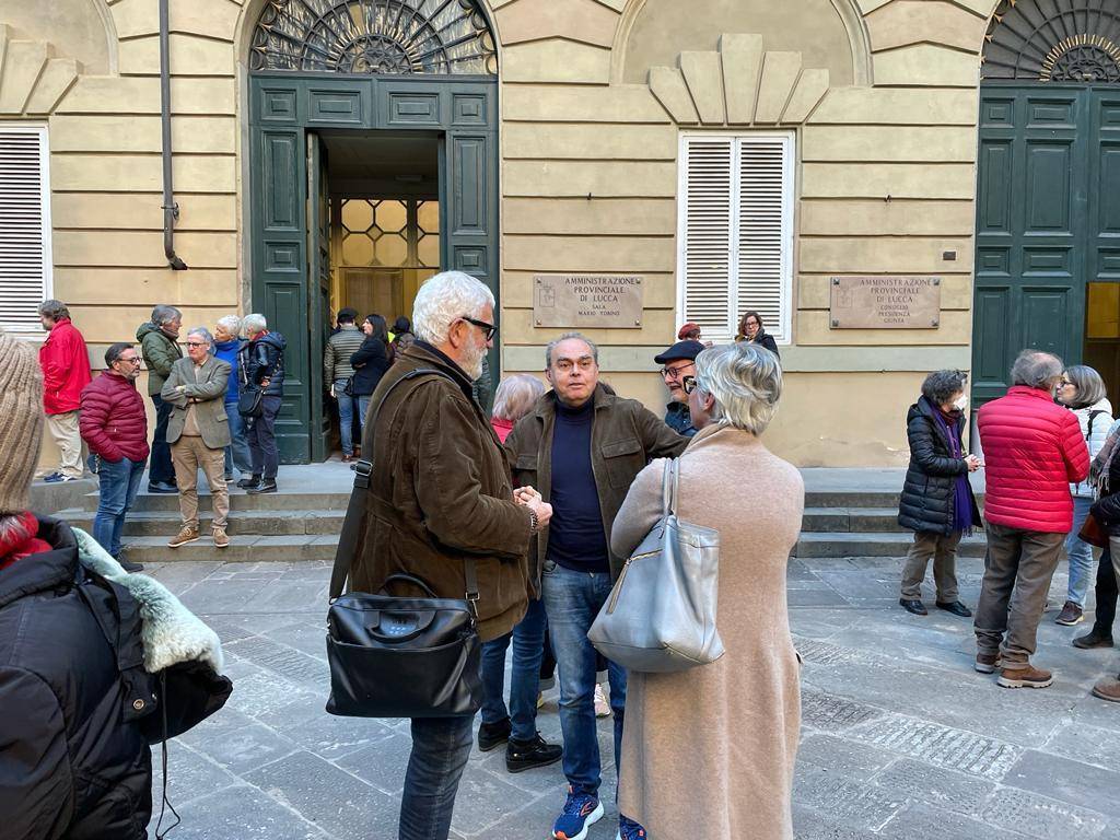 Battute a parte, c'era davvero tanta gente, oggi pomeriggio, fuori e dentro la sala Tobino di Palazzo Ducale, concessa a tempo di record, appena sei ore, dall'ente governato da Luca Menesini che, giustamente, non ha voluto perdere l'occasione di fare uno sgambetto ai cugini di città, ossia alla giunta di Mario Pardini. Dopo la maldestra cancellazione della presentazione del libro all'Agorà e tutto quel che ne è conseguito in termini di pezze e toppe più gravi e grosse del danno, in un battibaleno Teresa Leone e il suo staff hanno allestito una splendida sala per accogliere Luciano Luciani e il suo libro.