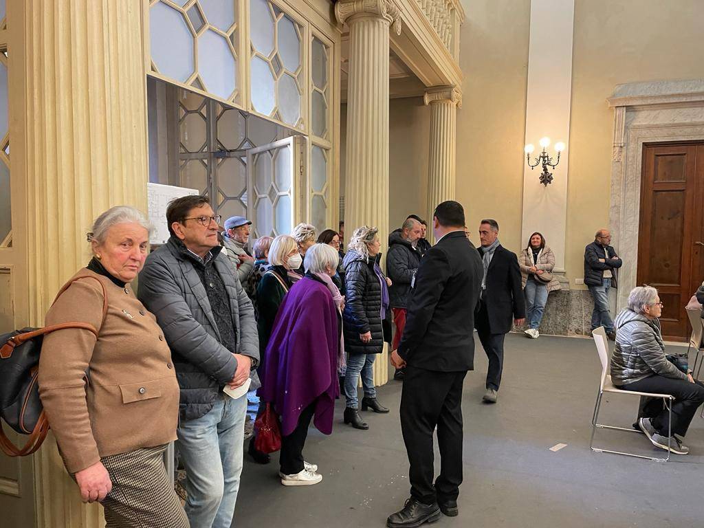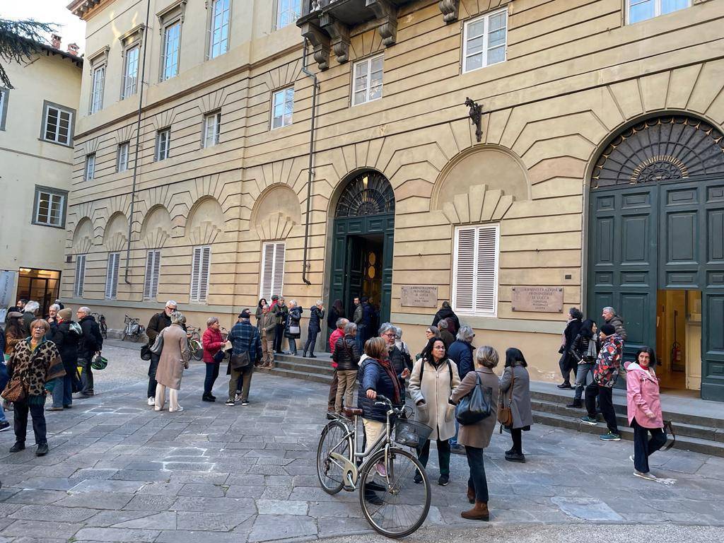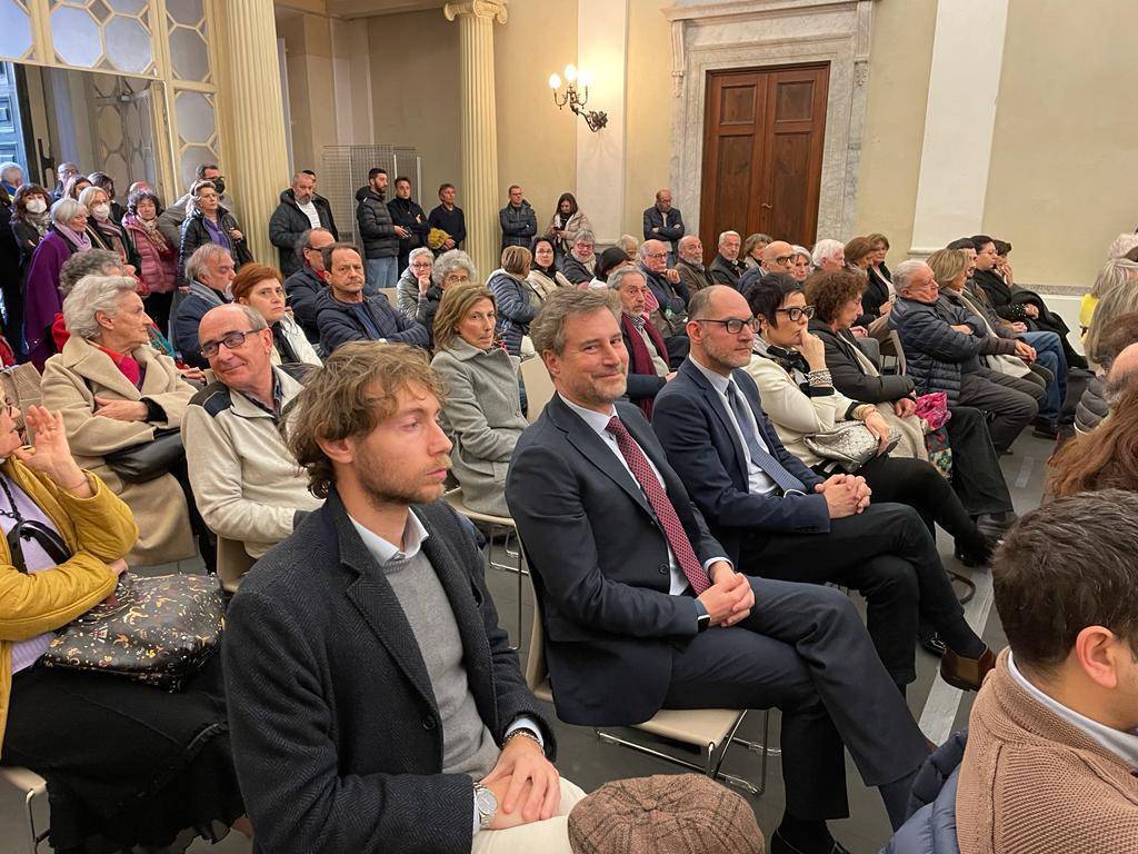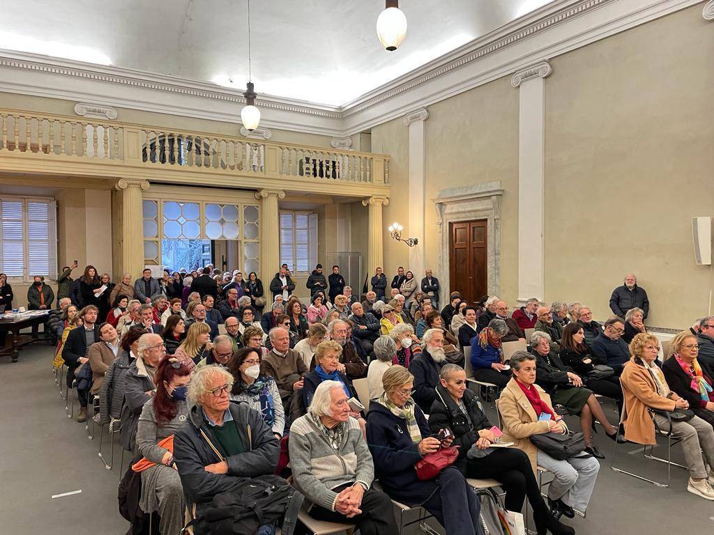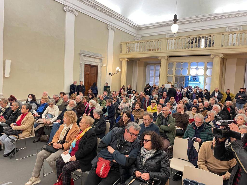 Battute a parte, c'era davvero tanta gente, oggi pomeriggio, fuori e dentro la sala Tobino di Palazzo Ducale, concessa a tempo di record, appena sei ore, dall'ente governato da Luca Menesini che, giustamente, non ha voluto perdere l'occasione di fare uno sgambetto ai cugini di città, ossia alla giunta di Mario Pardini. Dopo la maldestra cancellazione della presentazione del libro all'Agorà e tutto quel che ne è conseguito in termini di pezze e toppe più gravi e grosse del danno, in un battibaleno Teresa Leone e il suo staff hanno allestito una splendida sala per accogliere Luciano Luciani e il suo libro.