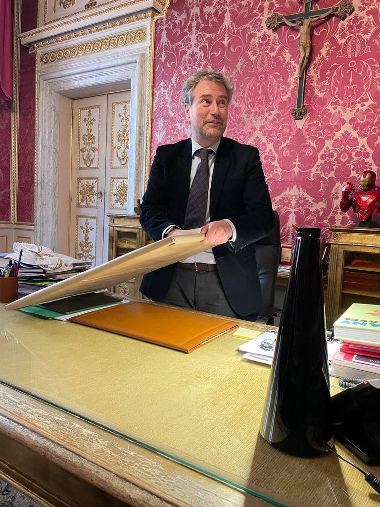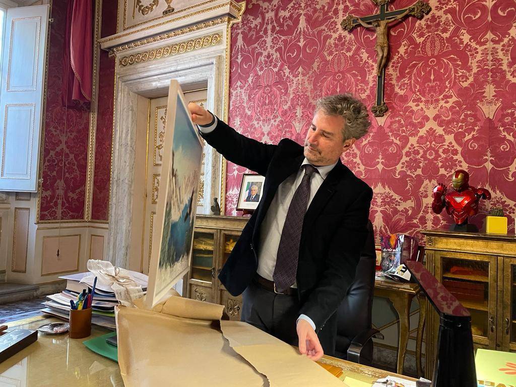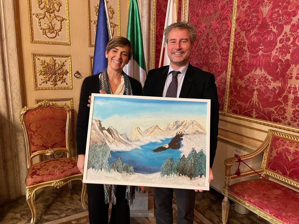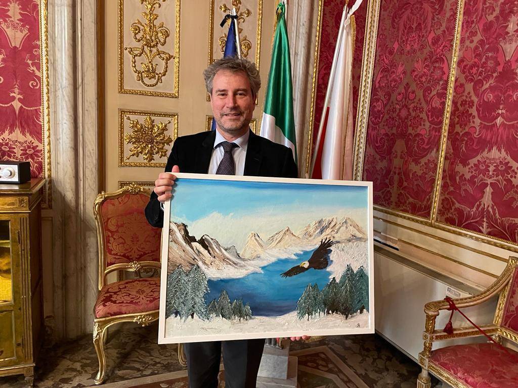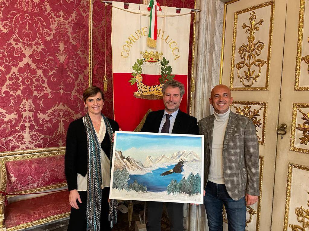 Il primo cittadino ha ricevuto la coppia nella sua stanza a palazzo dei Bradipi (già Orsetti) e ha anche ricevuto in dono dalla pittrice, un quadro intitolato Freedom. Bettaccini è anche presidente dell'associazione Ucai (Unione Cattolica Artisti Italiani).