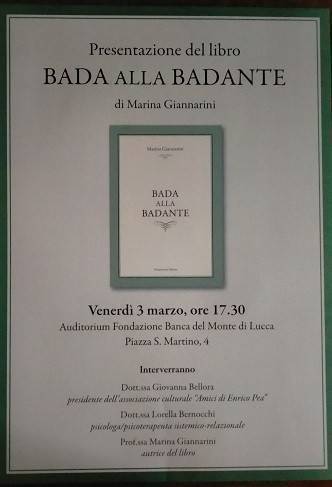 Venerdì marzo, alle 17.30, presso l’auditorium della Fondazione Banca del Monte di Lucca, verrà presentato il libro Bada alla Badante di Marina Giannarini.