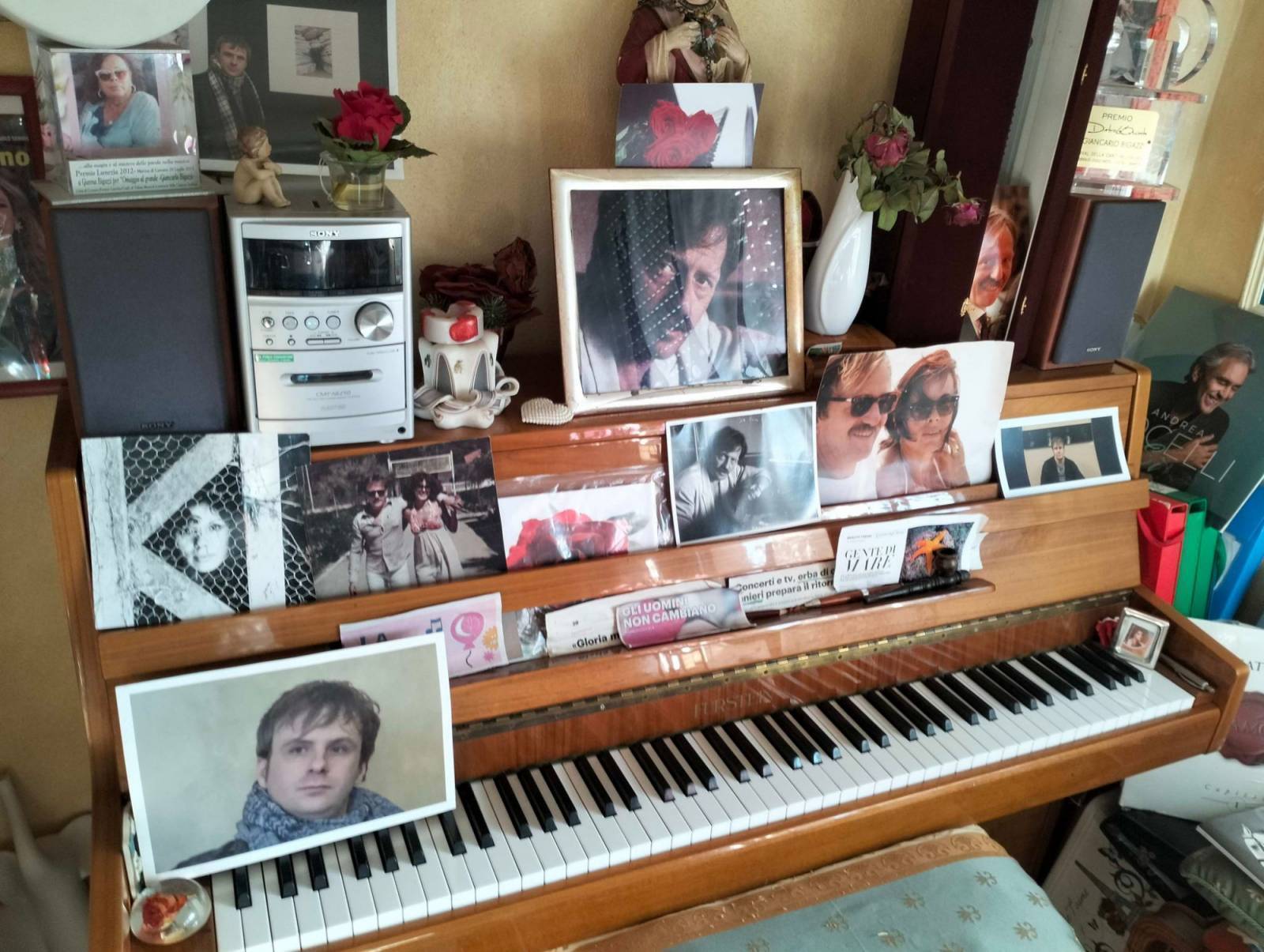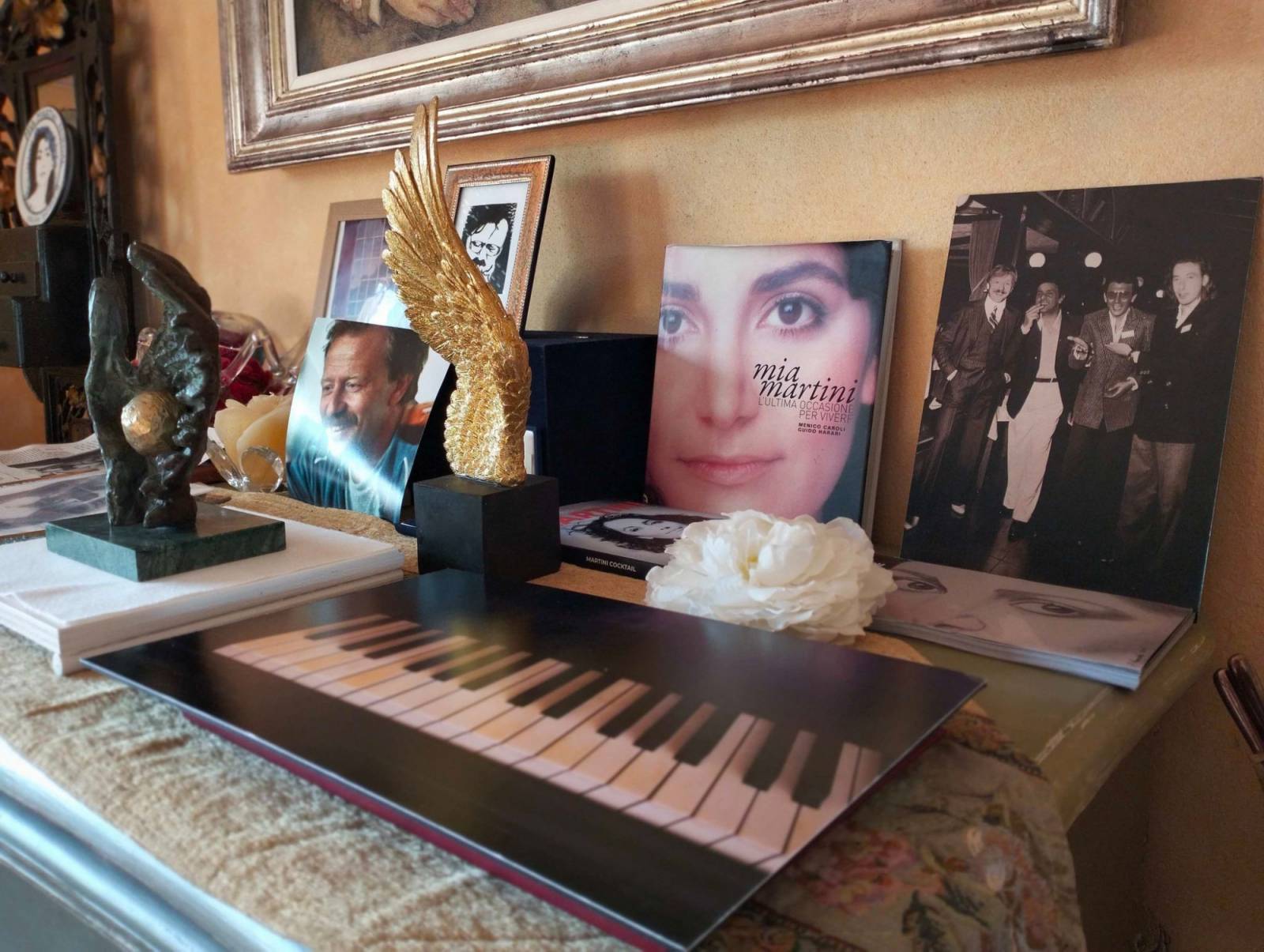 "Per Andrea Bocelli, Giancarlo scrisse il brano "Un'apertura d'ali". Tutt'oggi, online, si trova il provino che mio marito fece, pianoforte e voce, per il tenore. Il brano, però, giunse alle orecchie di Renato Zero, il quale mi supplicò di cantarla. Come facevo a dirgli di no? Così la cantò. Pochi giorni fa, comunque, Andrea ha fatto una festa sul mare. In cielo c'era una luna rossa enorme. Splendida. A vederlo c'erano centinaia di spettatori, la maggior parte stranieri. Era il 4 settembre, a mezzanotte sarebbe stato il compleanno di mio marito. Mi invitò a partecipare annunciandomi una sorpresa. Andrea cantò "Ci vorrebbe il mare" e "Un'apertura d'ali". Ho ancora i brividi se ci penso..."