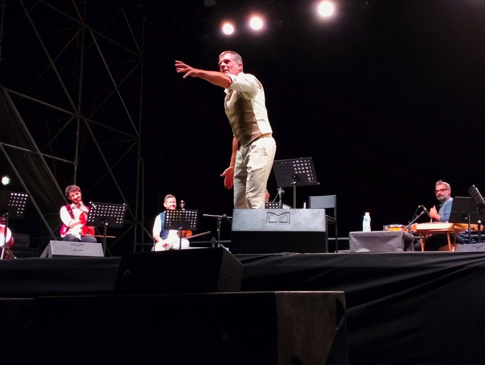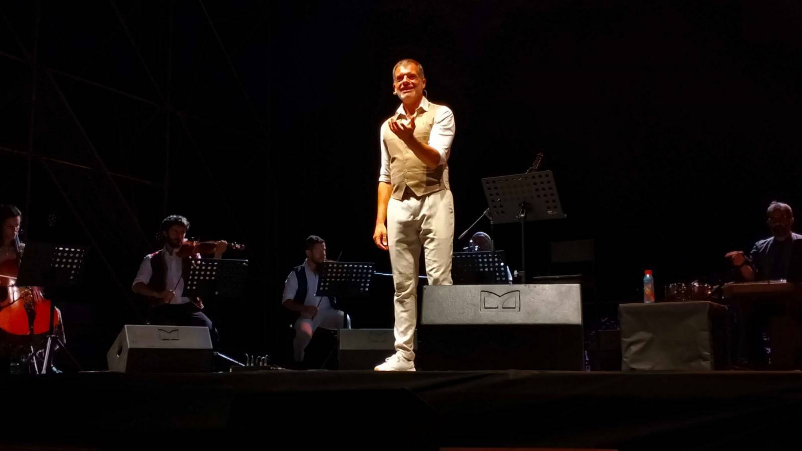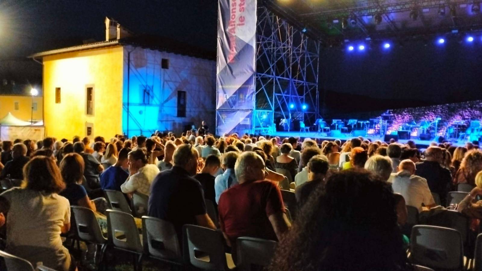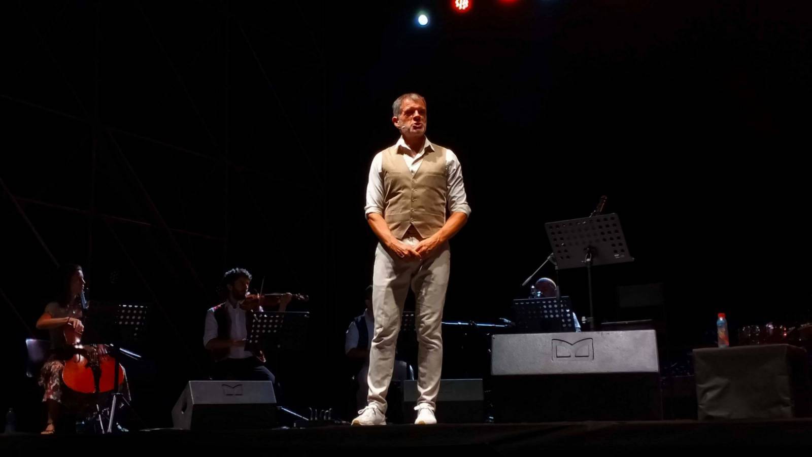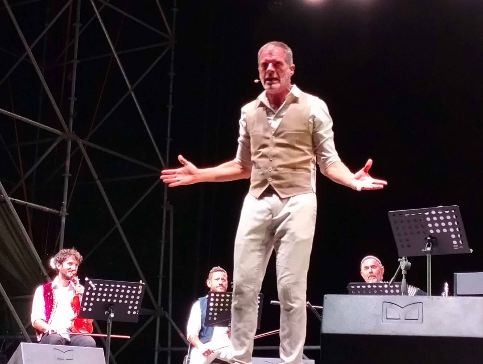 Appunto. Questa sera, a Castelnuovo, quel rogo ha ripreso ad ardere. Merito di uno storyteller d'eccezione, lo scrittore e drammaturgo fiorentino Stefano Massini, che, circondato da un'orchestra di otto elementi, ha saputo far rivivere il messaggio del Signor G sotto forma di musica e di testo. Lo ha fatto nella splendida cornice della fortezza, all'interno del festival "Mont'Alfonso sotto le stelle", utilizzando una formula inedita ed originale: quella del racconto di storie, apparentemente sconnesse dall'universo gaberiano, ma, in realtà, perfettamente congruenti con le canzoni dello stesso autore.