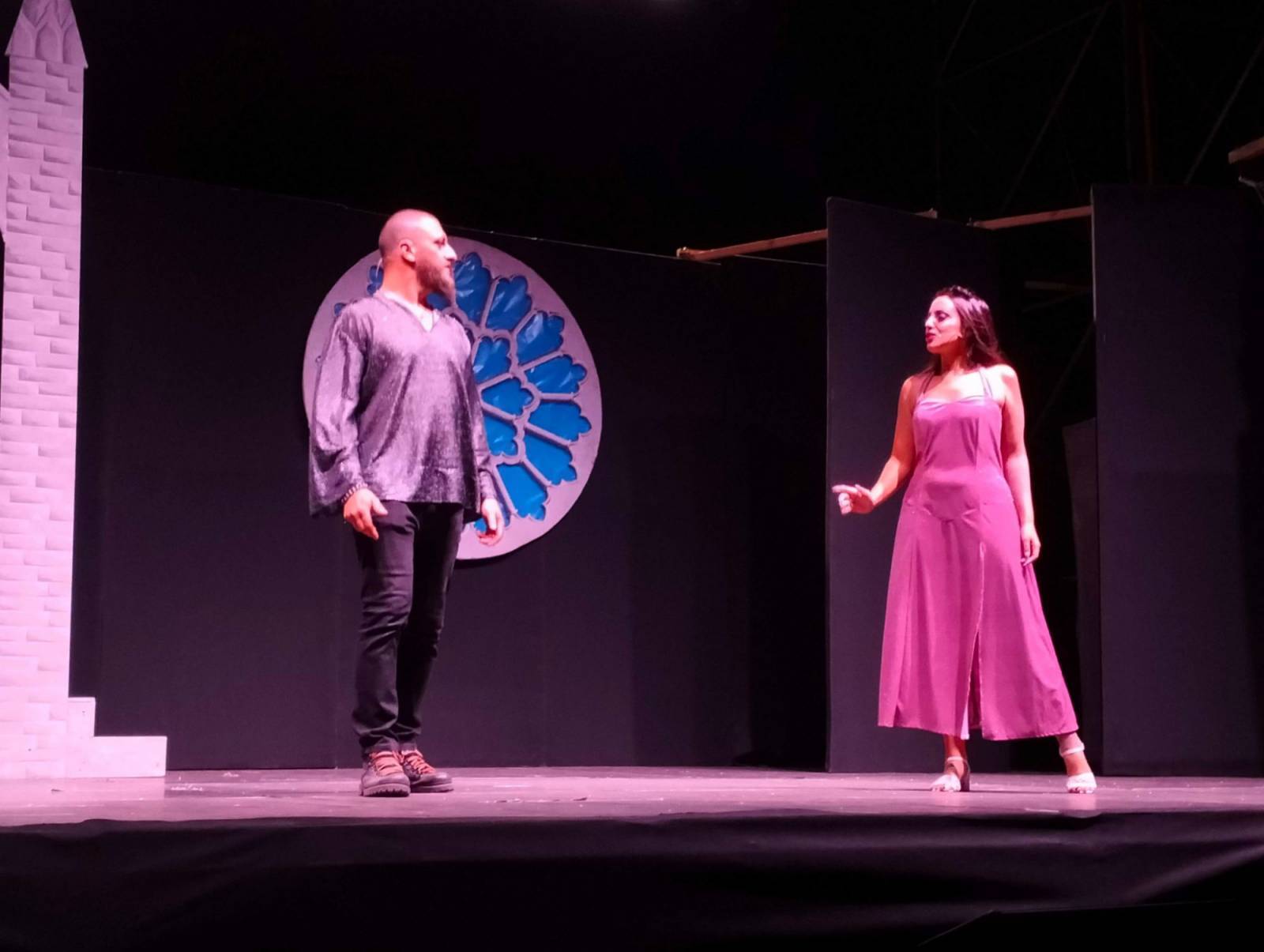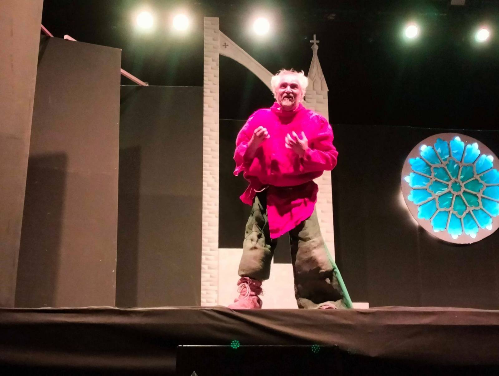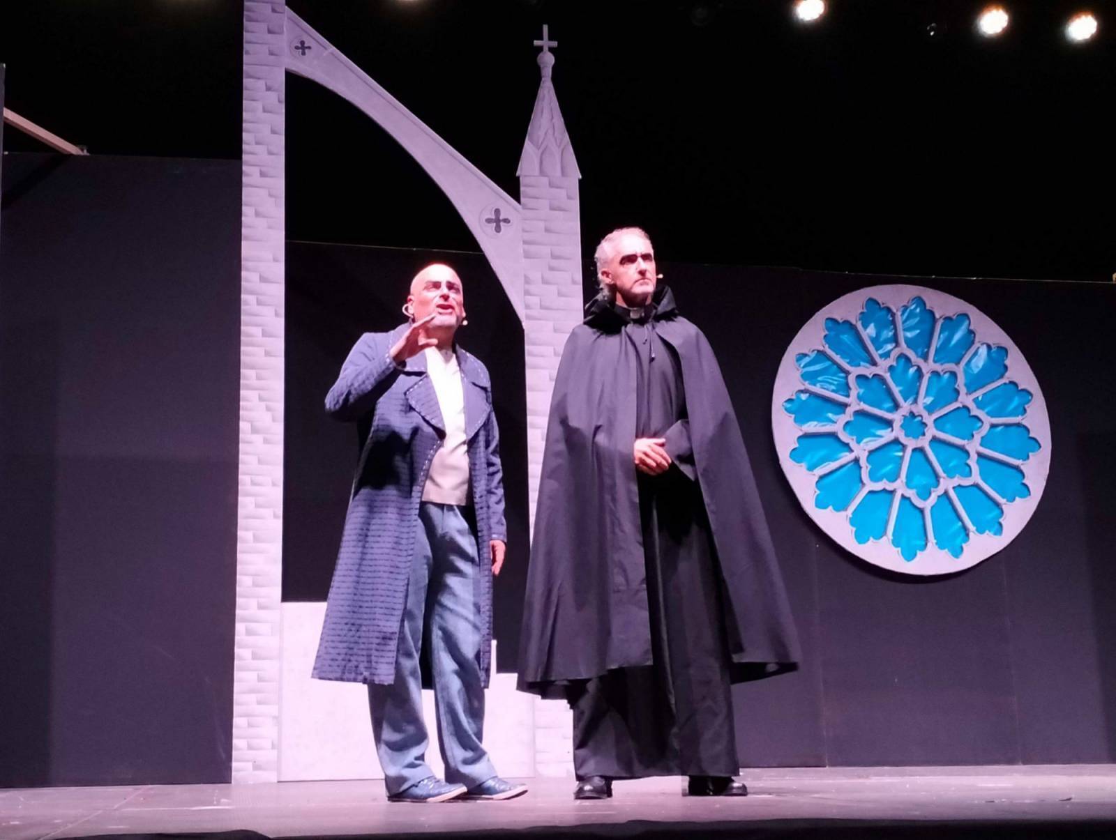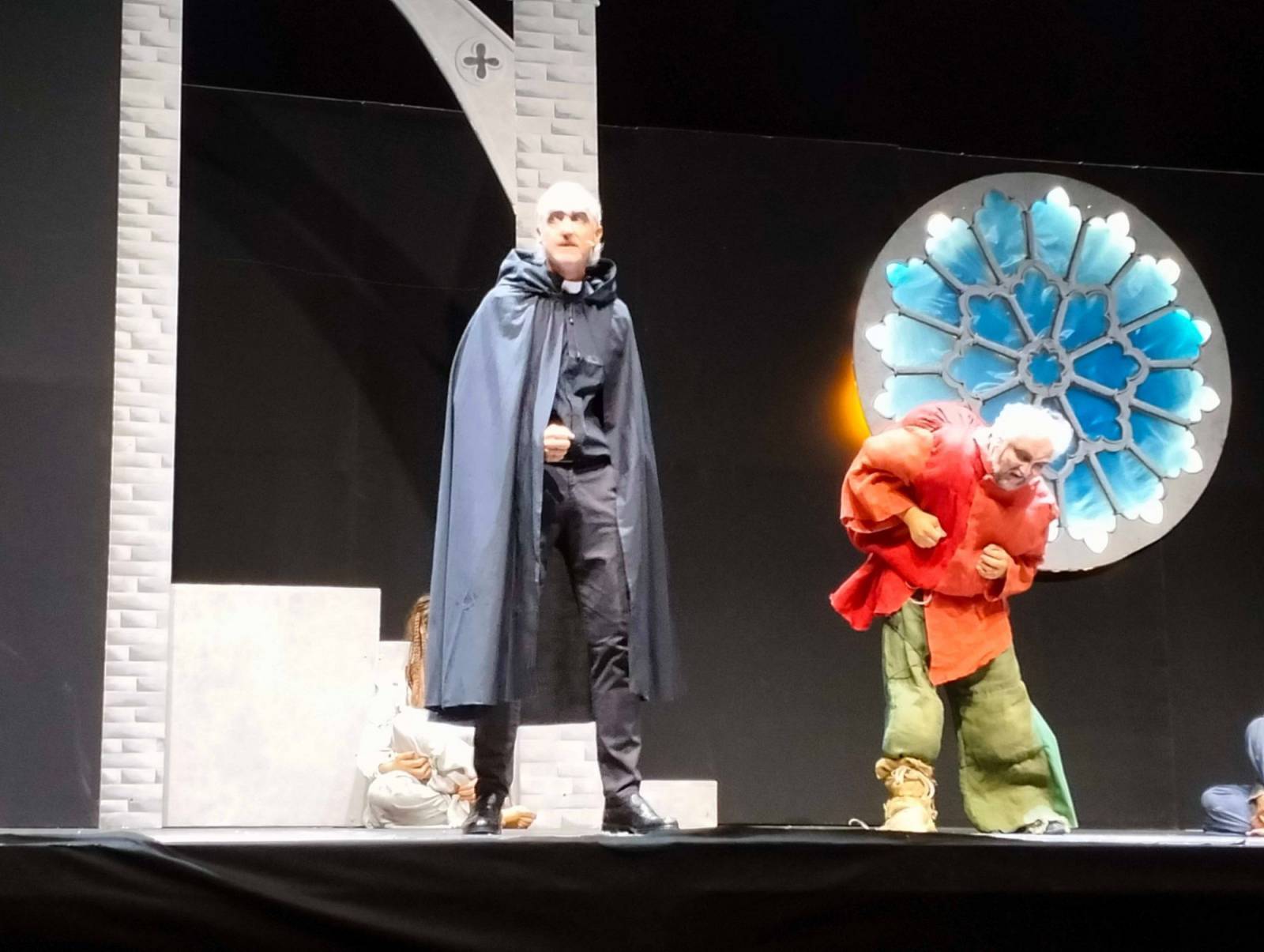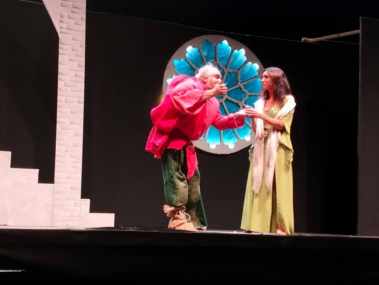 Favolosa la scenografia: due inquietanti gargoyles ai lati del palco, una sinistra scalinata, una irta guglia (gotica, va da sé) e un immenso rosone sullo sfondo. Il fascino della cattedrale parigina nel massimo del suo splendore. E poi la regia, i costumi, i trucchi, le coreografie. Tutto fantastico. Che dire, infine, dei personaggi? Sublimi. Esmeralda in vestito verde (smeraldo, appunto), interpretata da una bellissima e bravissima Debora Lemetti; Quasimodo, vestito rosso fuoco (come la passione che incarna), magistralmente reso da un sorprendente Alessandro Pedreschi; Frollo, il crudele curato, maestoso nell'interpretazione di Vincenzo Di Riccio. E via, via tutti gli altri: da Febo (uno statuario Luca Guido), a Fiordaliso (una sensuale Silvia Graziani), fino a Gringoire (sopra le righe Nicola Grisanti) e Clopin (un convincente Morris). Un plauso anche alle comparse, con una menzione speciale - verrà permessa - per la povera ballerina infortunatasi a metà opera alla quale va l'augurio, sincero, di una prontissima guarigione.