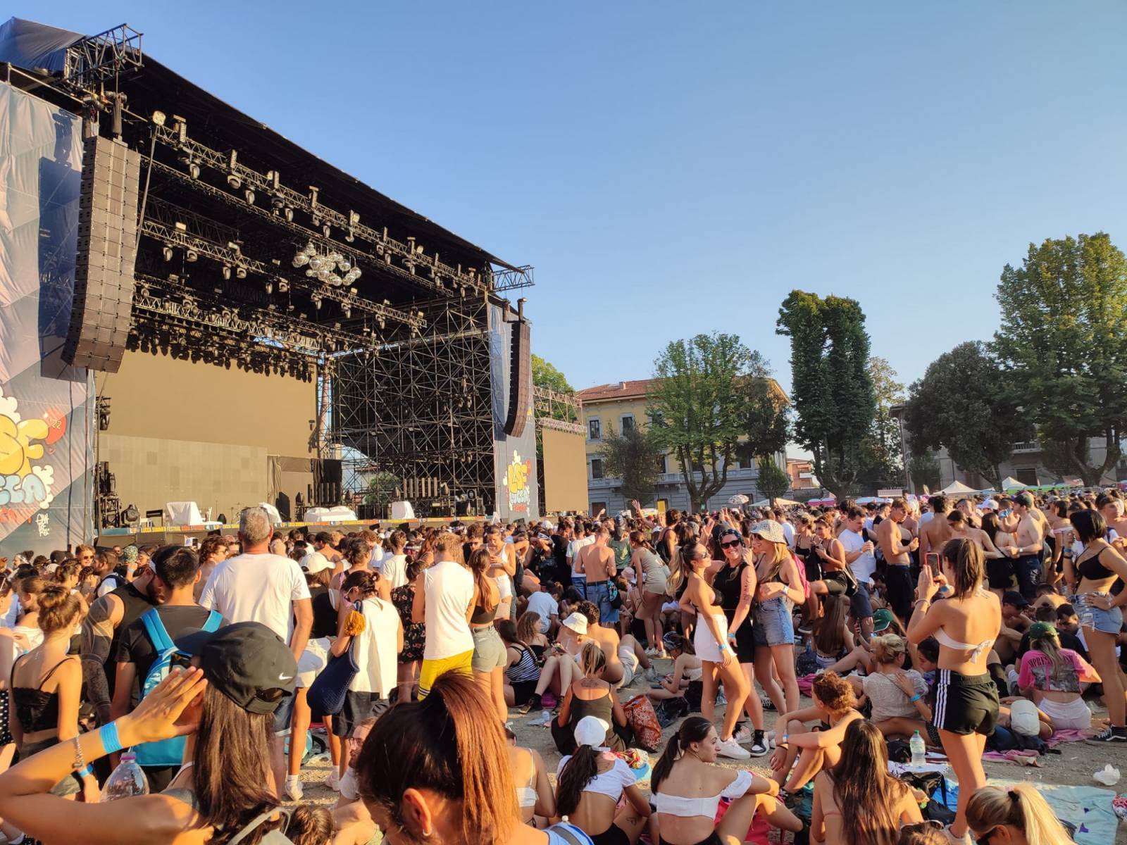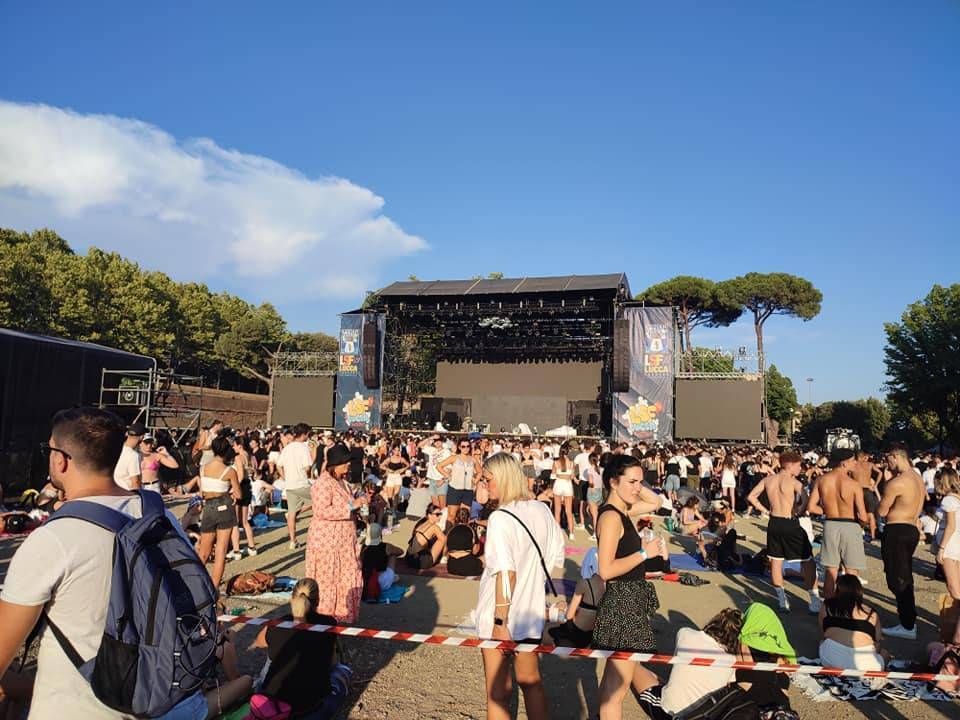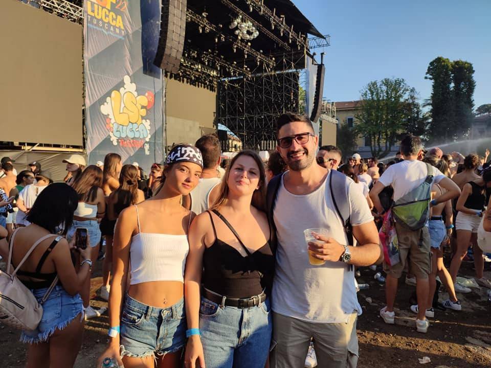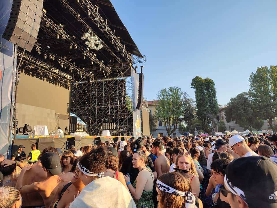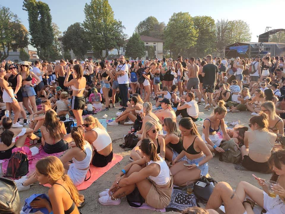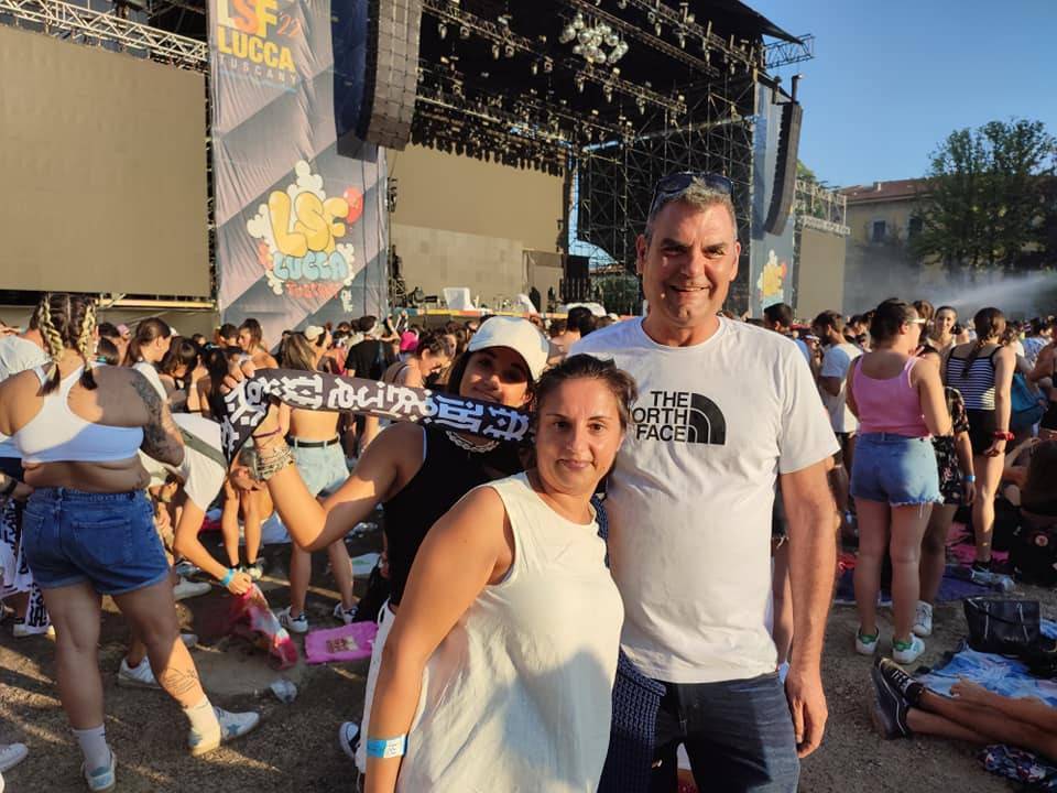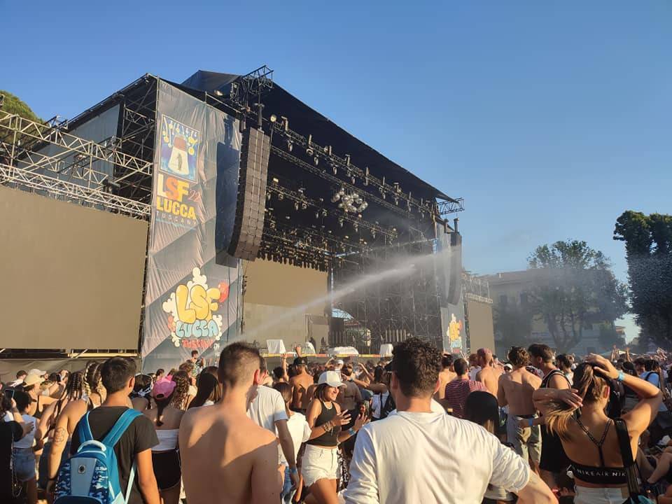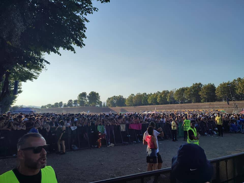 L’attesa trasforma i prati degli spalti, sia quello dei posti in piedi, che quello dell’area Pit, in una sorta di spiaggia dove i giovani, perfettamente organizzati e preparati, si sistemano su asciugamani con abbigliamento “minimal”. La nostra attesa si mescola al lavoro e alla curiosità di dare voce a questo “popolo”: qual è l’identikit del fan di Blanco? Risposta abbastanza semplice: ragazzine, teenager, anche giovanissime, ma anche giovanissimi, si parte dagli 8/10 anni e si arriva ai 18/20. In sostanza, uno dei concerti con il minor numero di patenti … così, al di là dei mezzi pubblici, con un grande dispiegamento di treni e pullman che hanno collegato le varie città a Lucca per l’occasione, molti genitori e familiari si sono mossi per accompagnare i propri figli.