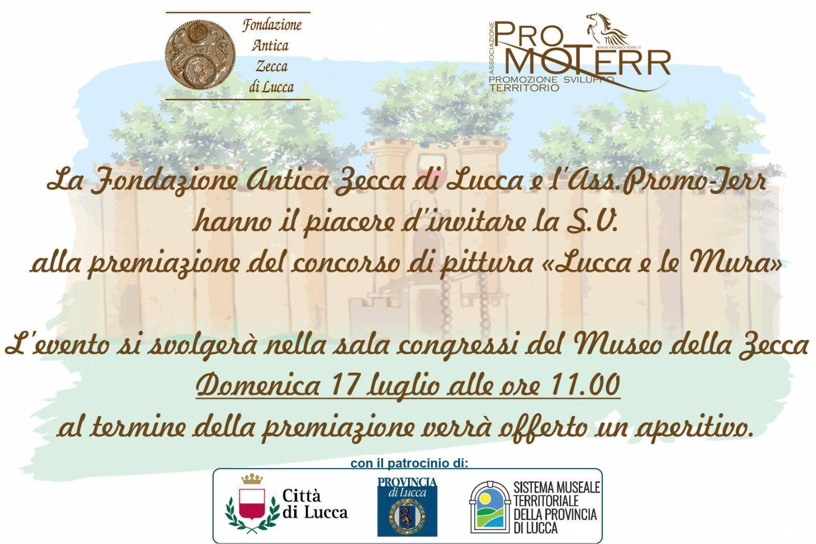 Domenica 17 luglio 2022 alle 11 al Museo dell'antica Zecca di Lucca premiazione dei vincitori del concorso di pittura "Lucca e le mura. Vivi l'arte in città" e assegnazione del 1° Trofeo "Museo della Zecca", alla presenza di Alessandro Colombini, presidente della Fondazione Antica Zecca di Lucca e presidente dell'Assemblea del Sistema Museale Territoriale della Provincia di Lucca. Tutte le 29 opere in concorso restano esposte al pubblico (che con il suo voto ha contribuito all'individuazione dei vincitori) fino al 30 settembre. L'iniziativa è realizzata in collaborazione con l'associazione Promo-Terr.