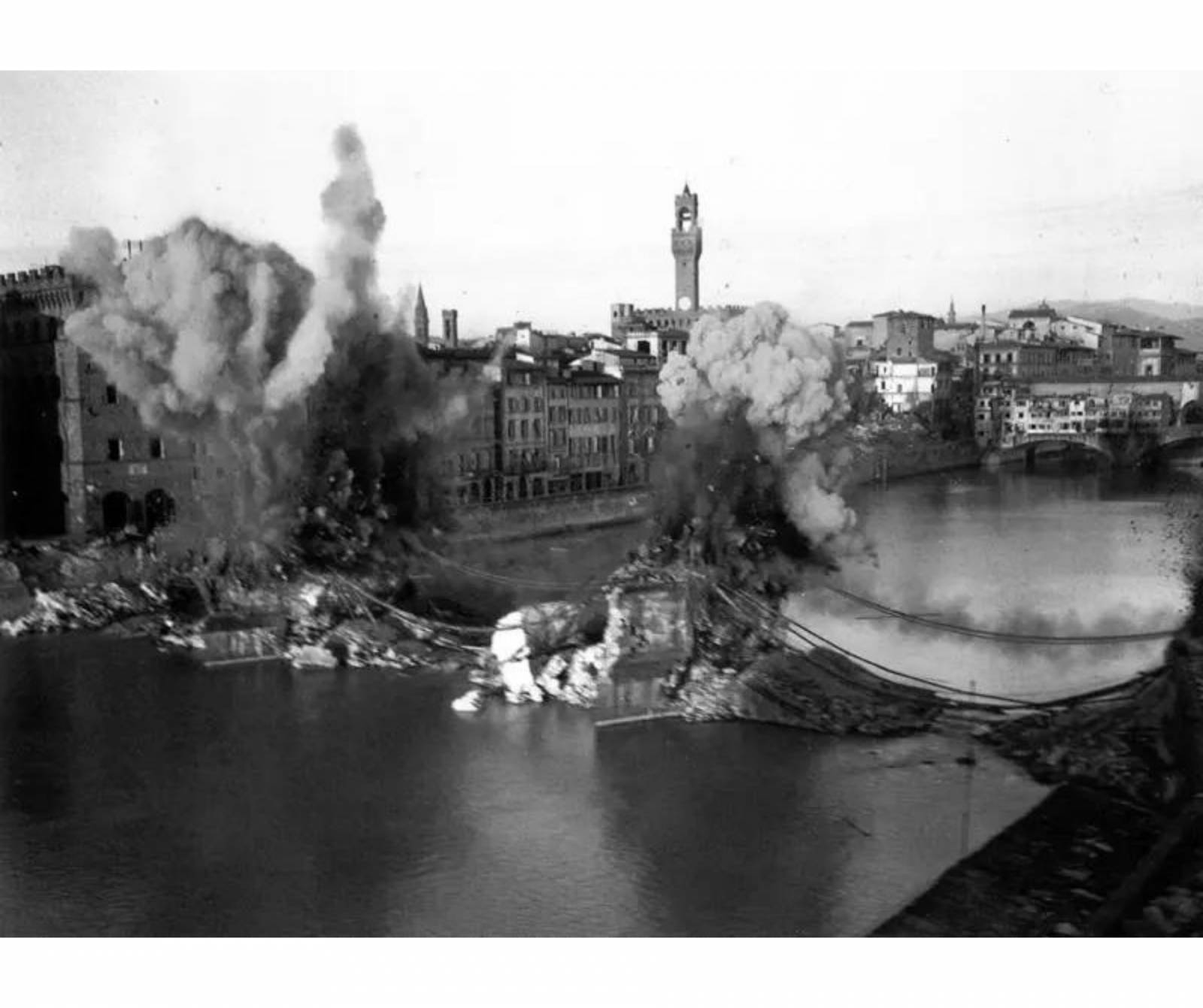 Questa prima produzione, della durata di poco più di dieci minuti, è l’adattamento e la sceneggiatura di un testo inedito di Carlo Ludovico Ragghianti, emerso dagli archivi della Fondazione grazie alle ricerche di Sara Meoni, nel quale è rievocato un terribile episodio dell’occupazione nazista della città di Firenze nell’estate del 1943: i bombardamenti sulla città con «il Ponte a Santa Trinita che saltava».