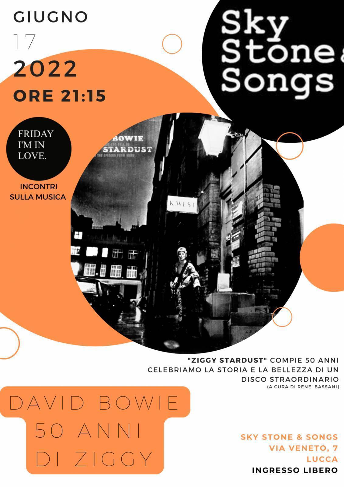 Si inizia venerdì 17, alle 21:15, con un incontro sulla storia della musica del ciclo 'Friday I'm in Love'. E non sarà una storia 'qualunque': René Bassani, infatti, accompagnerà alla scoperta dei segreti di un album che ha fatto la storia della musica, 'Ziggy Stardust' di David Bowie che, proprio quest'anno, festeggia cinquant'anni dalla sua pubblicazione.
