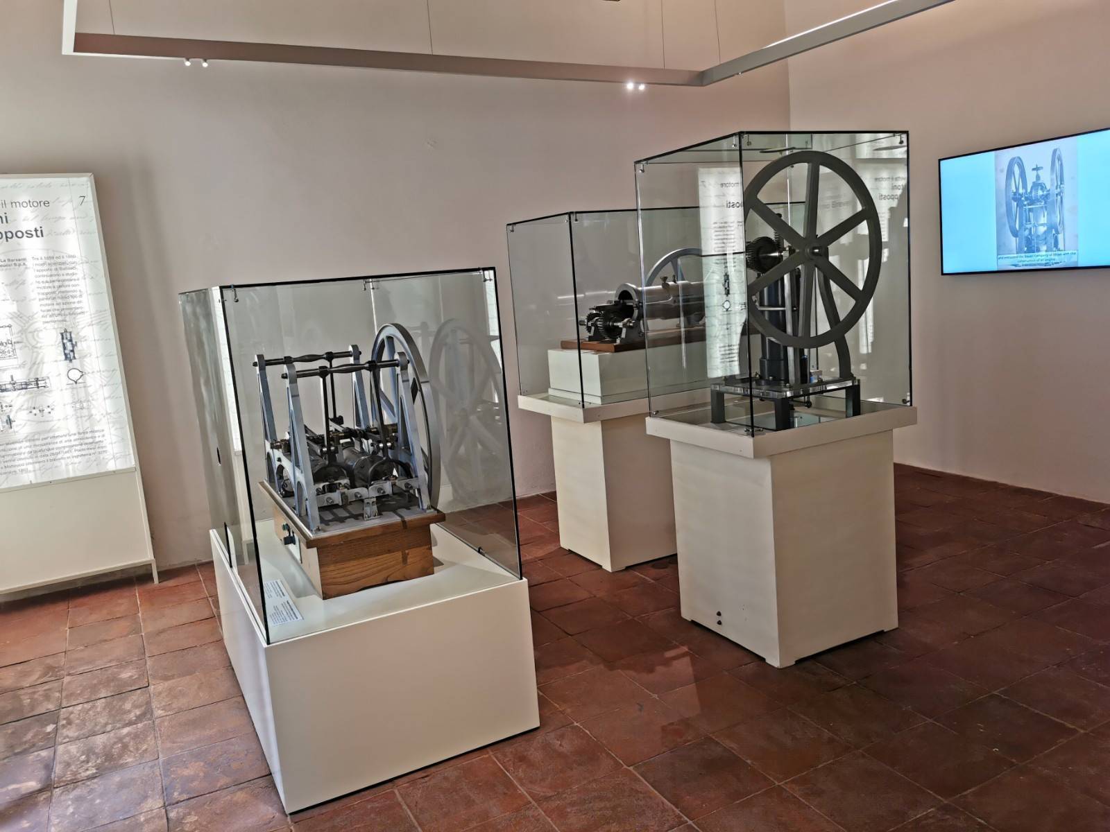 IL MUSEO. All'ingresso del Museo si viene accolti dai modelli a grandezza naturale dei prototipi di motore a scoppio inventati da Barsanti e Matteucci. Perfettamente funzionanti, gli esemplari in mostra riproducono i movimenti delle macchine. Qui, sono presenti anche alcuni video che ne illustrano il funzionamento e la meccanica. Al piano superiore, invece, sono conservate le riproduzioni dei documenti che attestano e riconoscono la paternità dell'invenzione a Barsanti e Matteucci, oltre ad alcuni modelli degli apparecchi che gli scienziati utilizzarono per i primi esperimenti. Per completare l'esposizione, sono stati realizzati filmati che narrano le vite e le opere degli inventori.