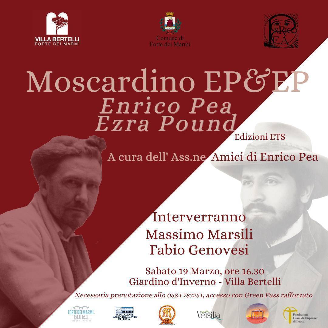 Enrico Pea: proseguono le attività dell'associazione culturale lucchese "Amici di Enrico Pea", nata per promuovere la conoscenza dello scrittore amico di Ungaretti. Massimo Marsili e Fabio Genovesi saranno relatori di un incontro dedicato allo scrittore e al suo amico e traduttore Ezra Pound, dal titolo "Moscardino EP&EP Enrico Pea Ezra Pound", organizzato dall'associazione a Villa Bertelli (Forte dei Marmi), sabato 19 marzo 2022 alle 16,30 a ingresso libero.