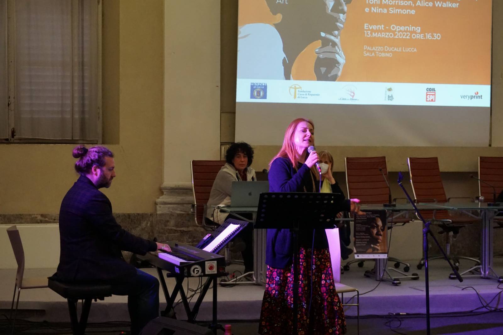 Ad accompagnare questa esposizione dell'artista, nel giorno di apertura, c'erano anche Roberta Ferrari, professore di letteratura di inglese presso l'università di Pisa, Maria Teresa Leone, consigliere con delega alle pari opportunità, e Michela Lombardi, cantante jazz, accompagnata da Andrea Garibaldi al piano.